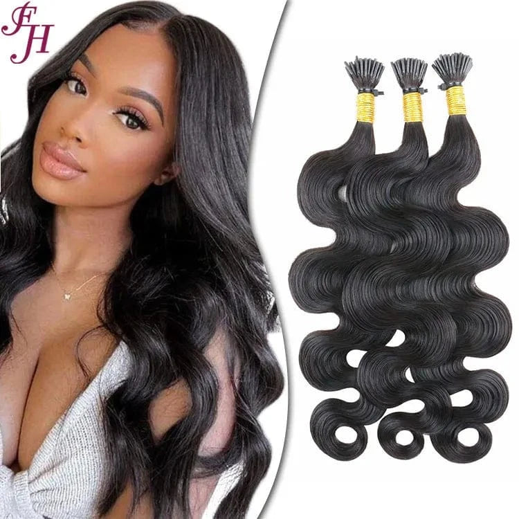 FH unprocessed raw brazilian hair i tip human hair extension natural black body wave i-tip remy hair extensions
