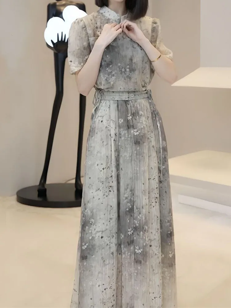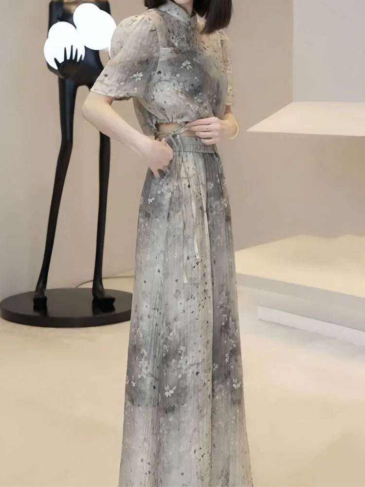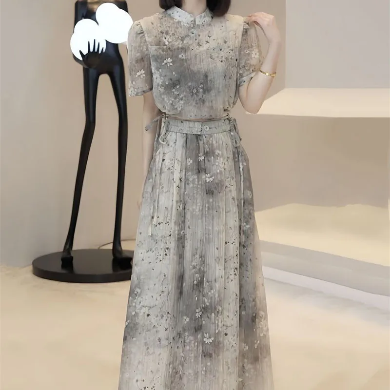 French national style printed skirt women's spring and summer new high-quality fashion design sense niche temperament two-piece