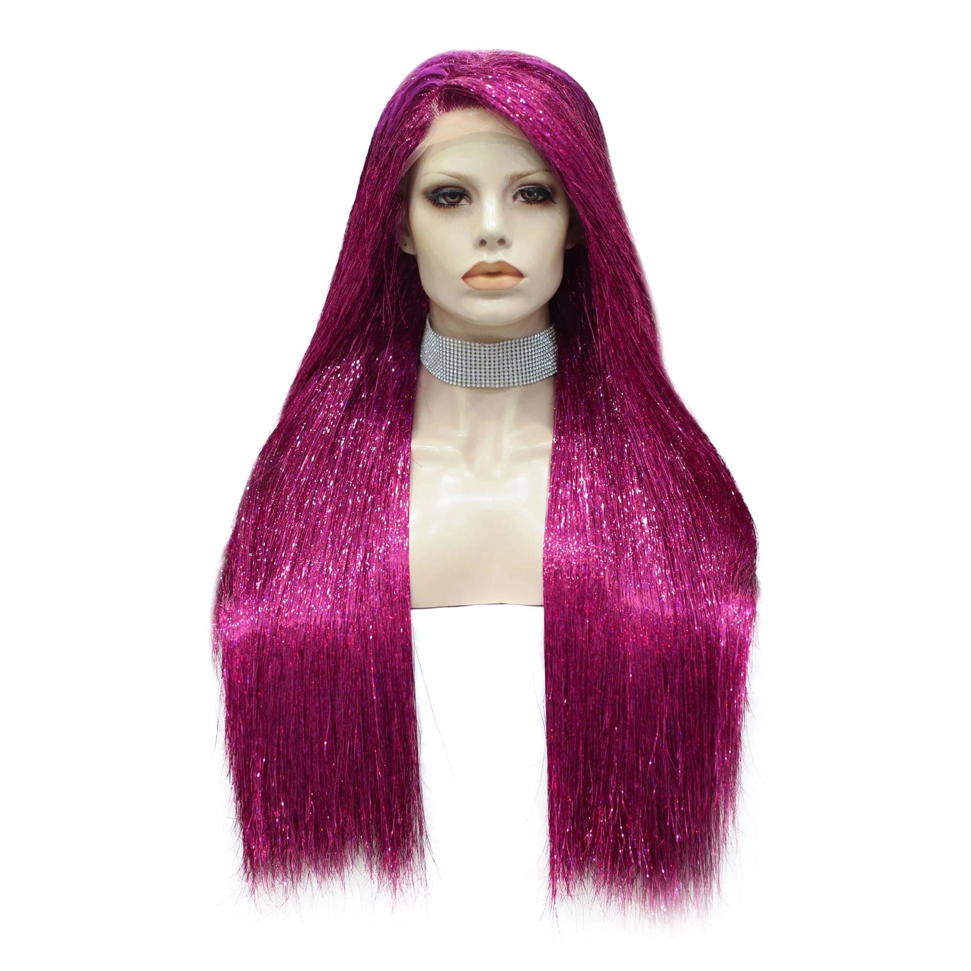 Full Tinsel Hair Lace Front Wig Silky Straight Overnight Delivery Synthetic Lace wigs