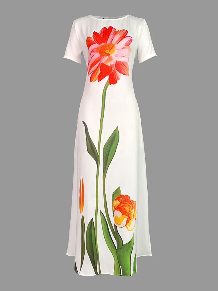 Gymystars Summer Evening Dresses Elegant Party Dresses 2025 Fashion Boat Neck Flower Print Luxurious Holiday Dress Trend Clothes