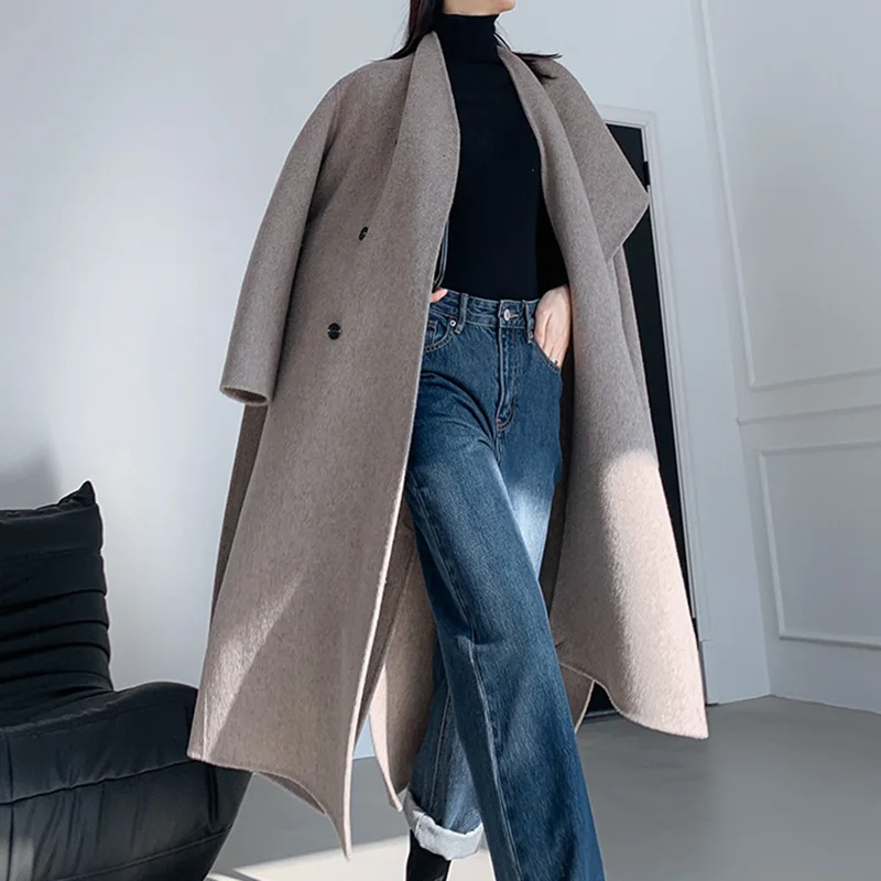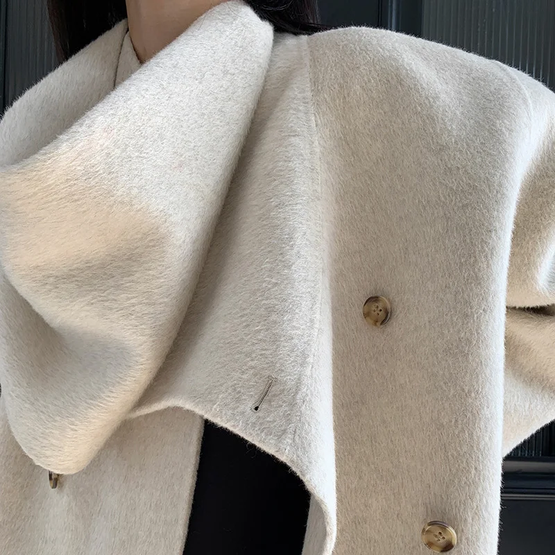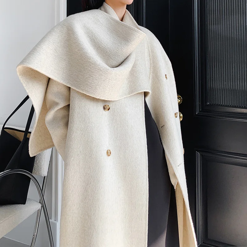 High Quality Oversized Cashmere Coat Winter Elegant Women Wool Coats with Scarf