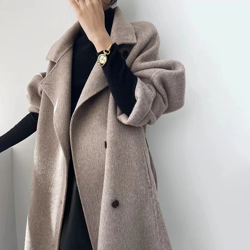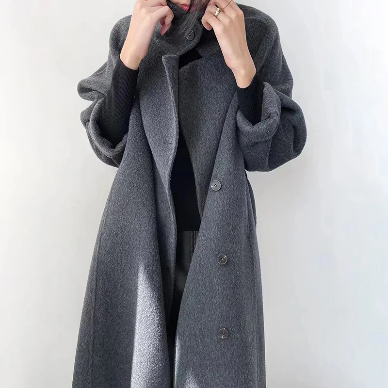 High Quality Solid Color Cashmere Overcoat Women Fashion Belted Long Coats for Ladies
