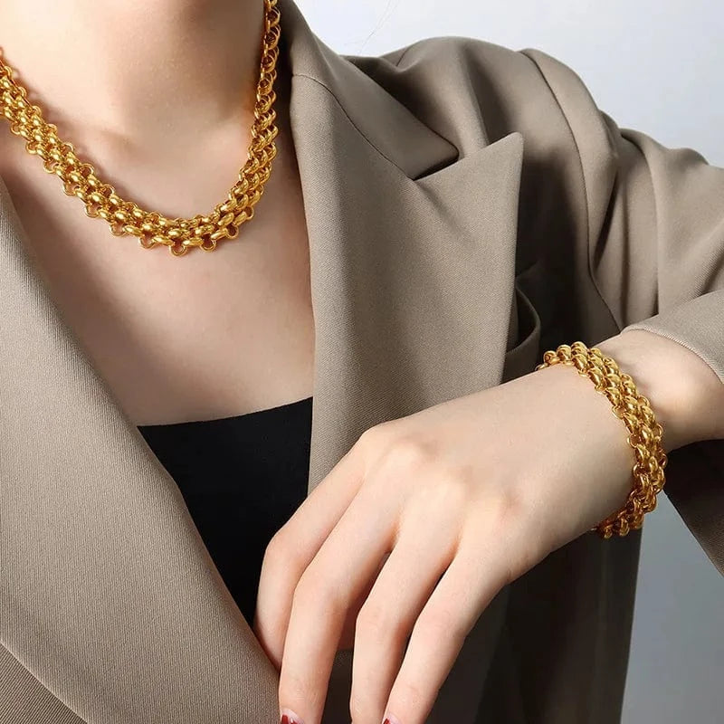 High Quality Stainless Steel Thick Chain Necklace Bracelet Set for Women Gold Plated Fashion Chains Necklaces Jewelry Wholesale