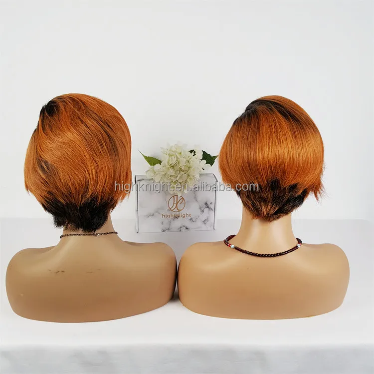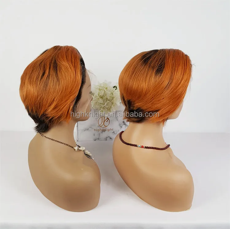 Highknight 100% Brazilian Virgin Pixie Cut Short Color Human Hair Lace Front Glueless Wigs For Black Women
