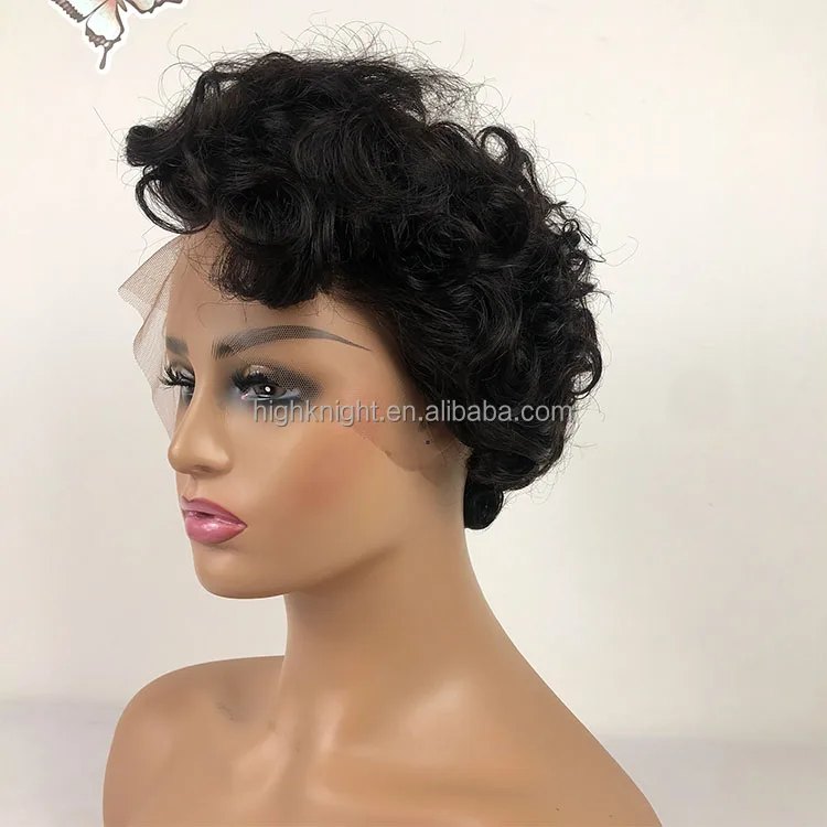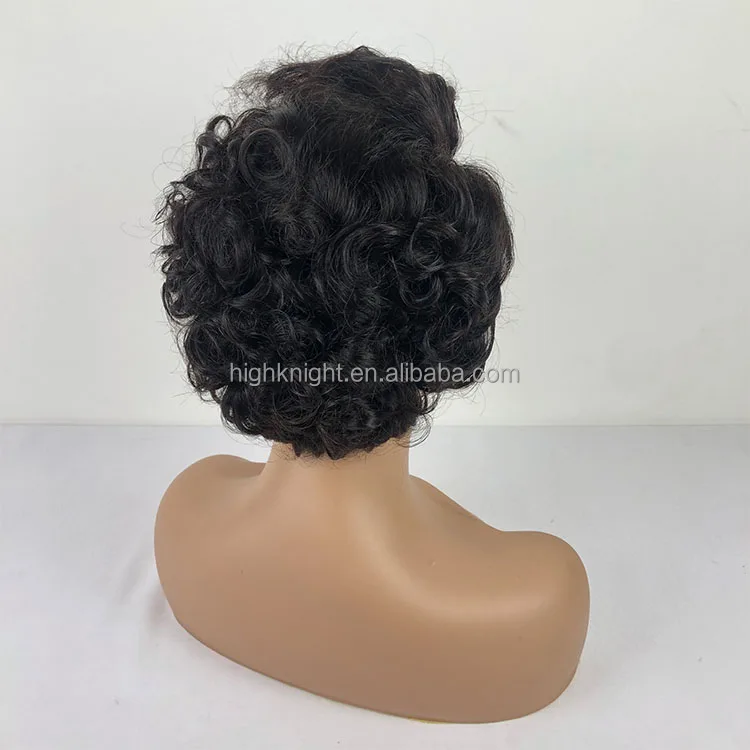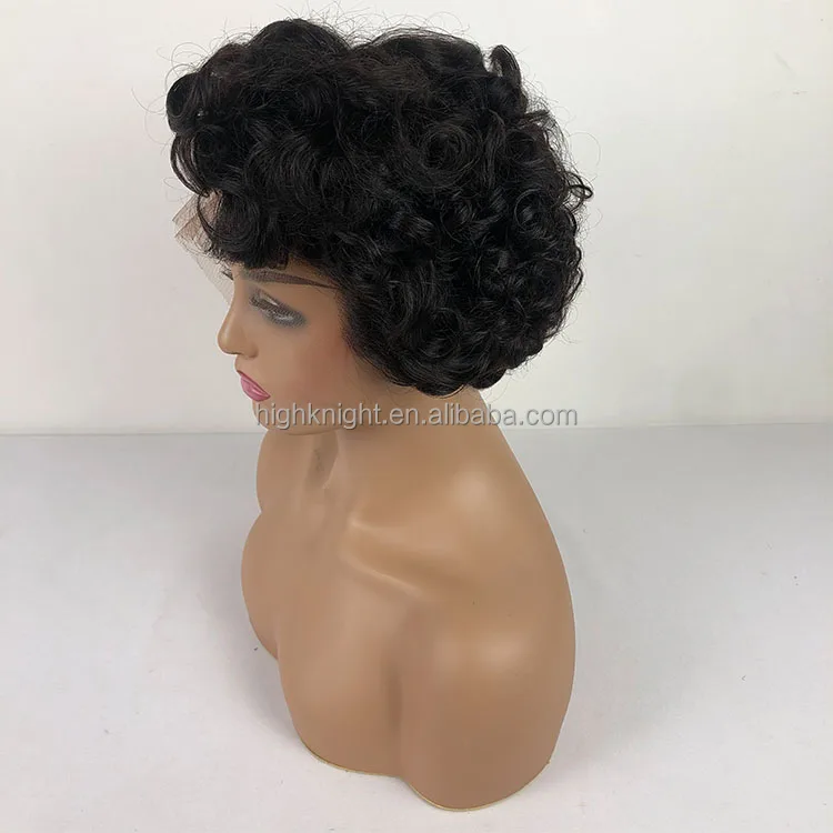 Highknight 4*4 Short Pixie Cut Human Hair Wig Curly Bob Lace Front Pixie Wigs Pixie Curls Pre Plucked Bleached Knots Wigs