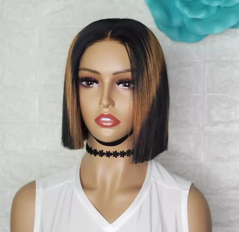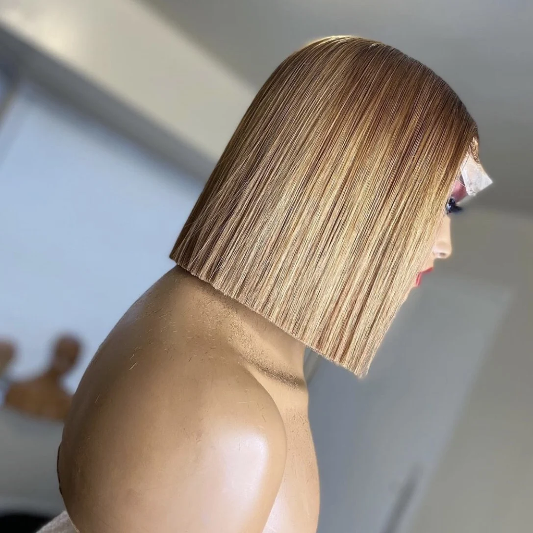 Highlight Bob Colored Transparent Lace 13X6 Human Hair Wig Mink Brazilian raw virgin Short Bob Wigs For Black Women
