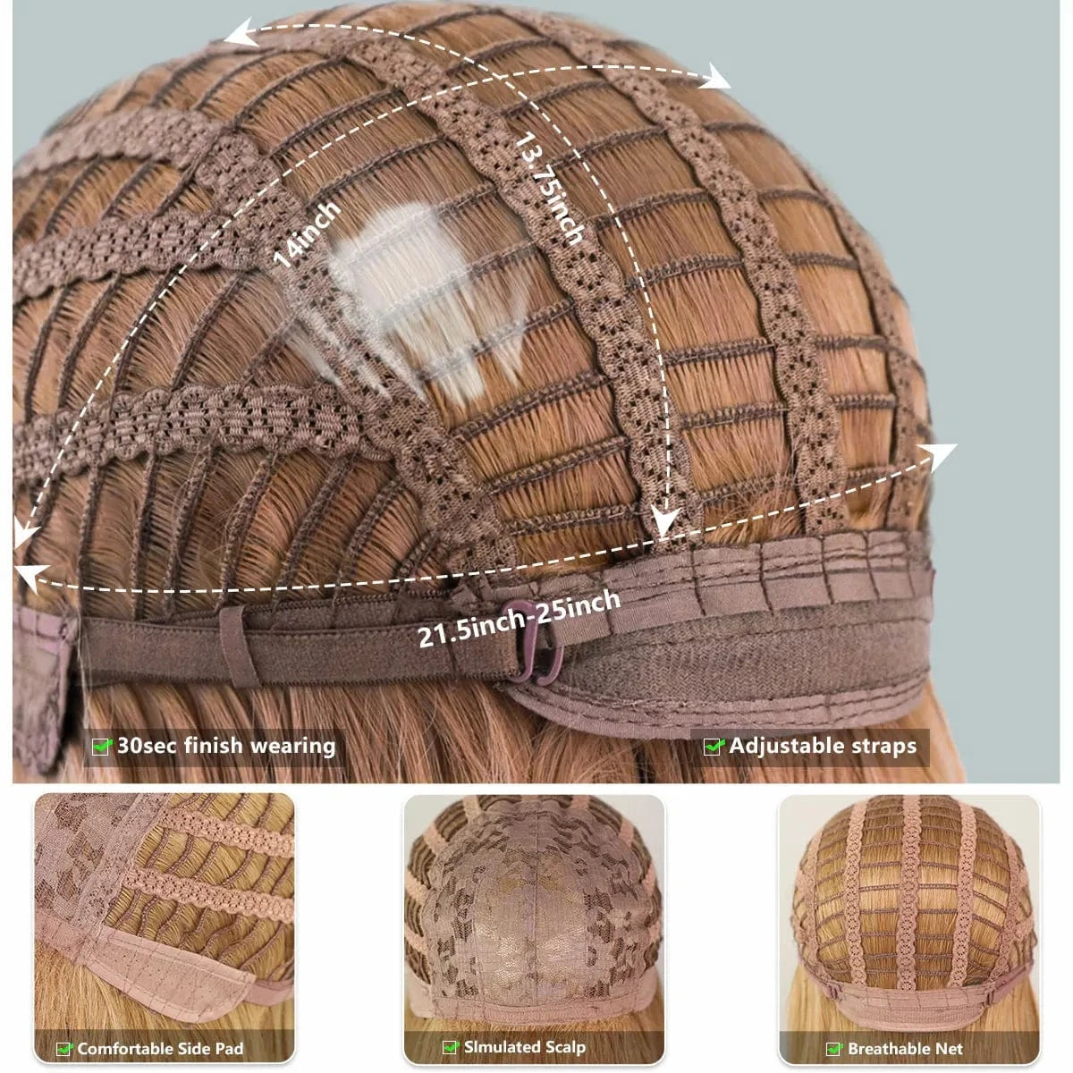 - [Upgraded Rose Wig Cap]: 100% Breathable rose Inner net wig cap is lightweight. There are two adjustment straps on the side of the wigs, which can be adjustable length is 20"-22", to suit different head sizes, The wig cap adopts a unique imported mesh, which is more breathable and comfortable when wearing the ombre blue wig. Additional gifts: It contains 1 wig cap+1 bag of hairpin.