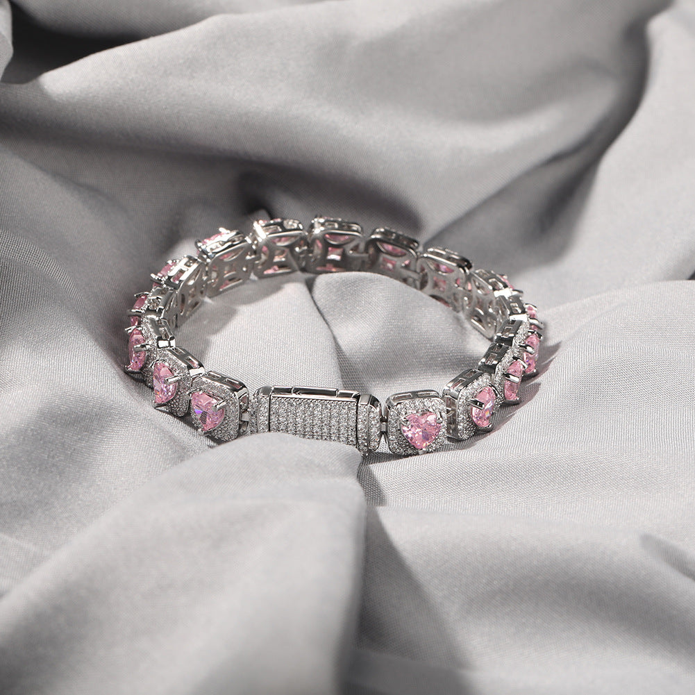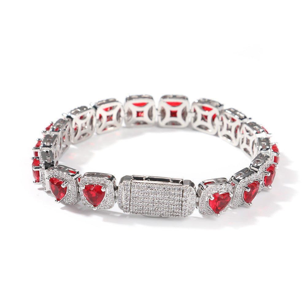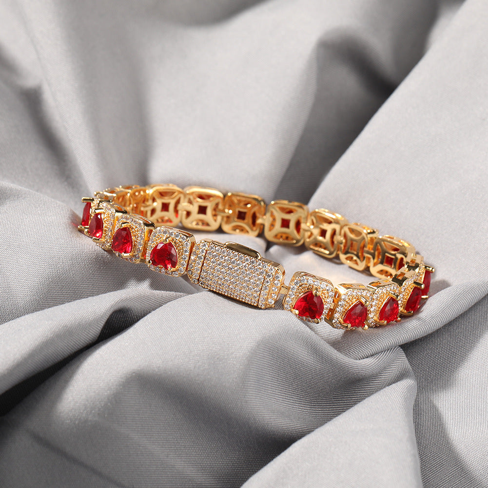 Hip Hop Jewelry 18K Gold Plated Shining 9mm Square Tennis Chain Micro Paved Heart CZ Bracelets