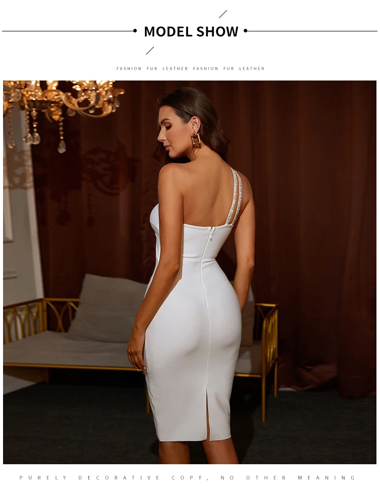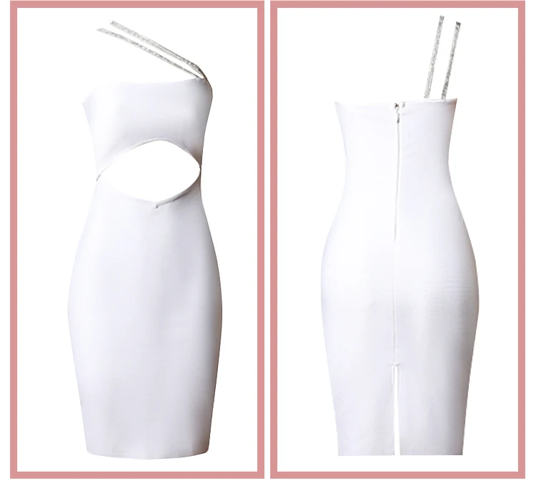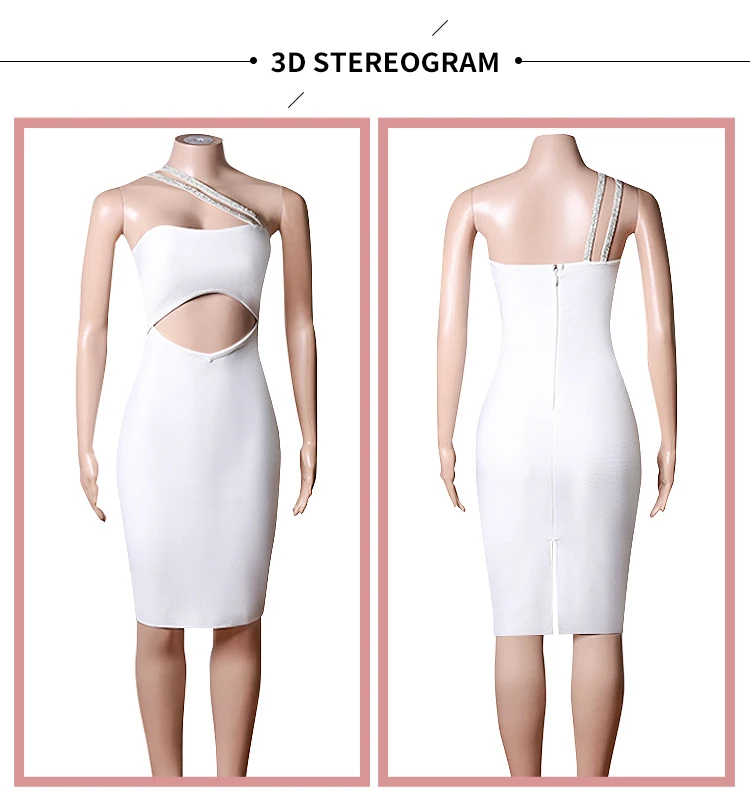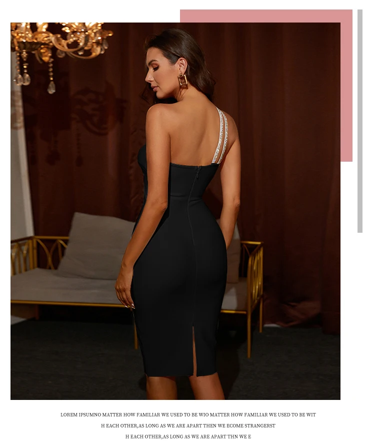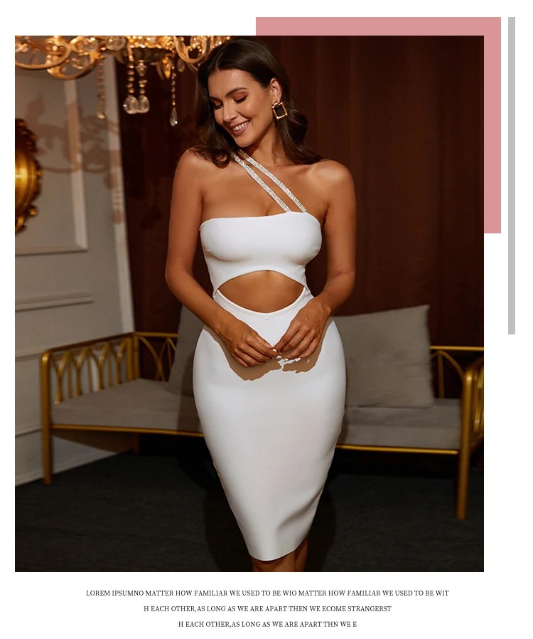 Hollow Front One shoulder Asymmetric knit dress bodycon Cocktail dress with crystal