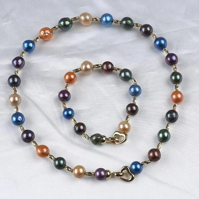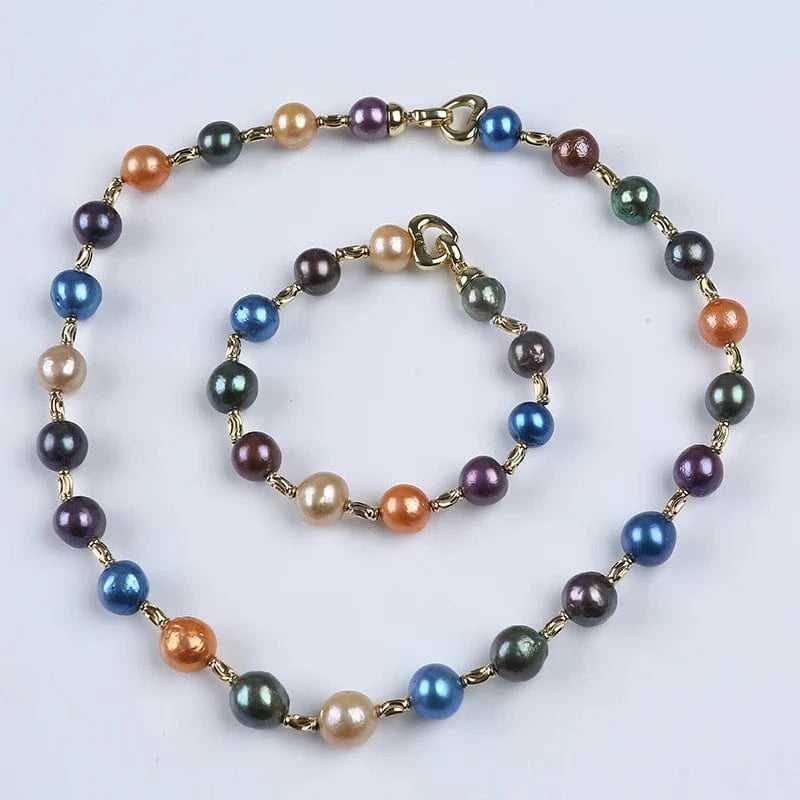 Hot Sale Colorful Edison Freshwater Pearls Beads Bracelet Necklace Jewelry Set For Women