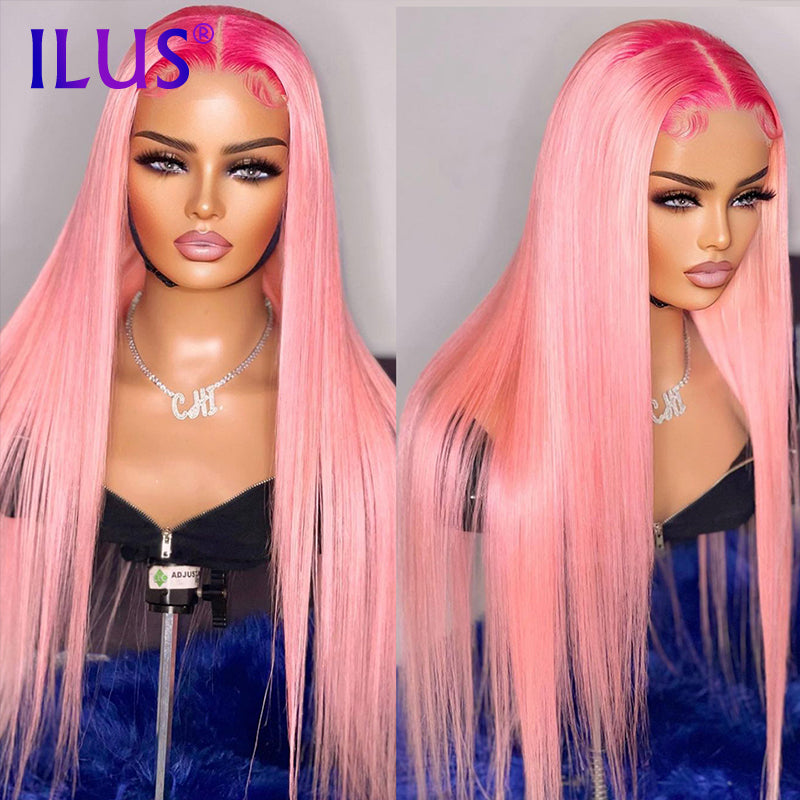 Hot Sale Free Shipping Straight Pink Color Lace Front Human Hair Wigs For Black Women Brazilian HD Transparent Lace Frontal Wigs