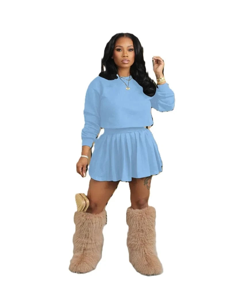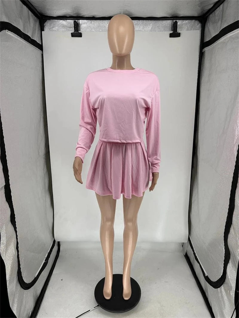 hot selling 2024 fall new arrivals trending products 2025 spring women ladies sexy beauty pink 2 piece sweatshirt and skirt set