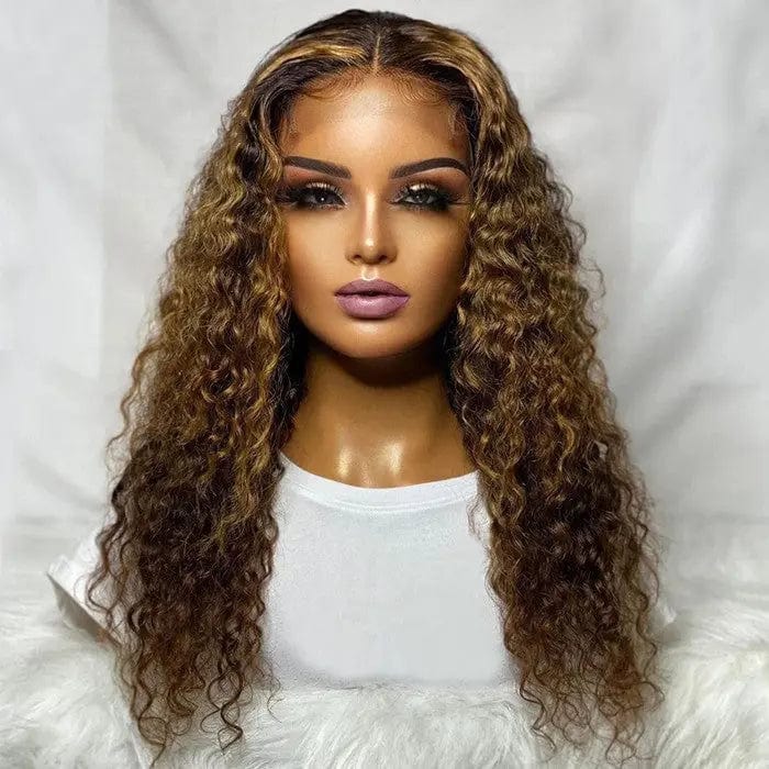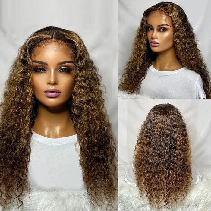 Hot Selling Deep Wave Curly Wigs Ombre Brown Brazilian Human Hair 13*4 Lace Front Wigs for Black Women