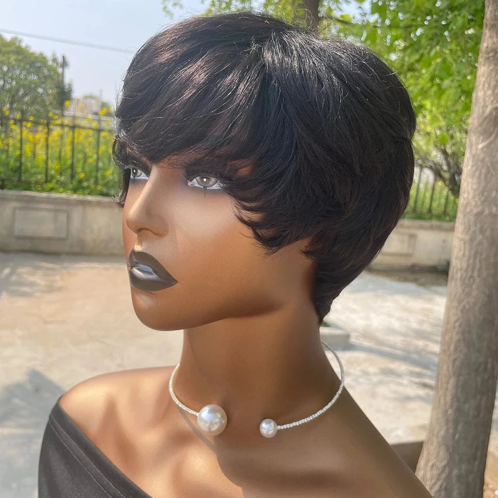Human Hair Wigs Short Pixie Cut Wig Human Hair For Black Women Machine Made Wigs With Bangs Pixi Wig Perruque Cheveux Humain