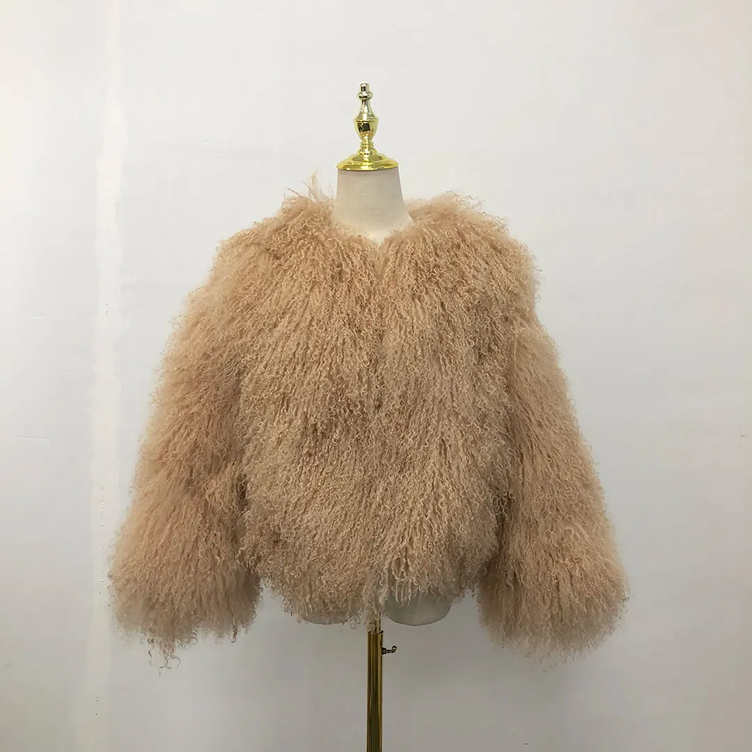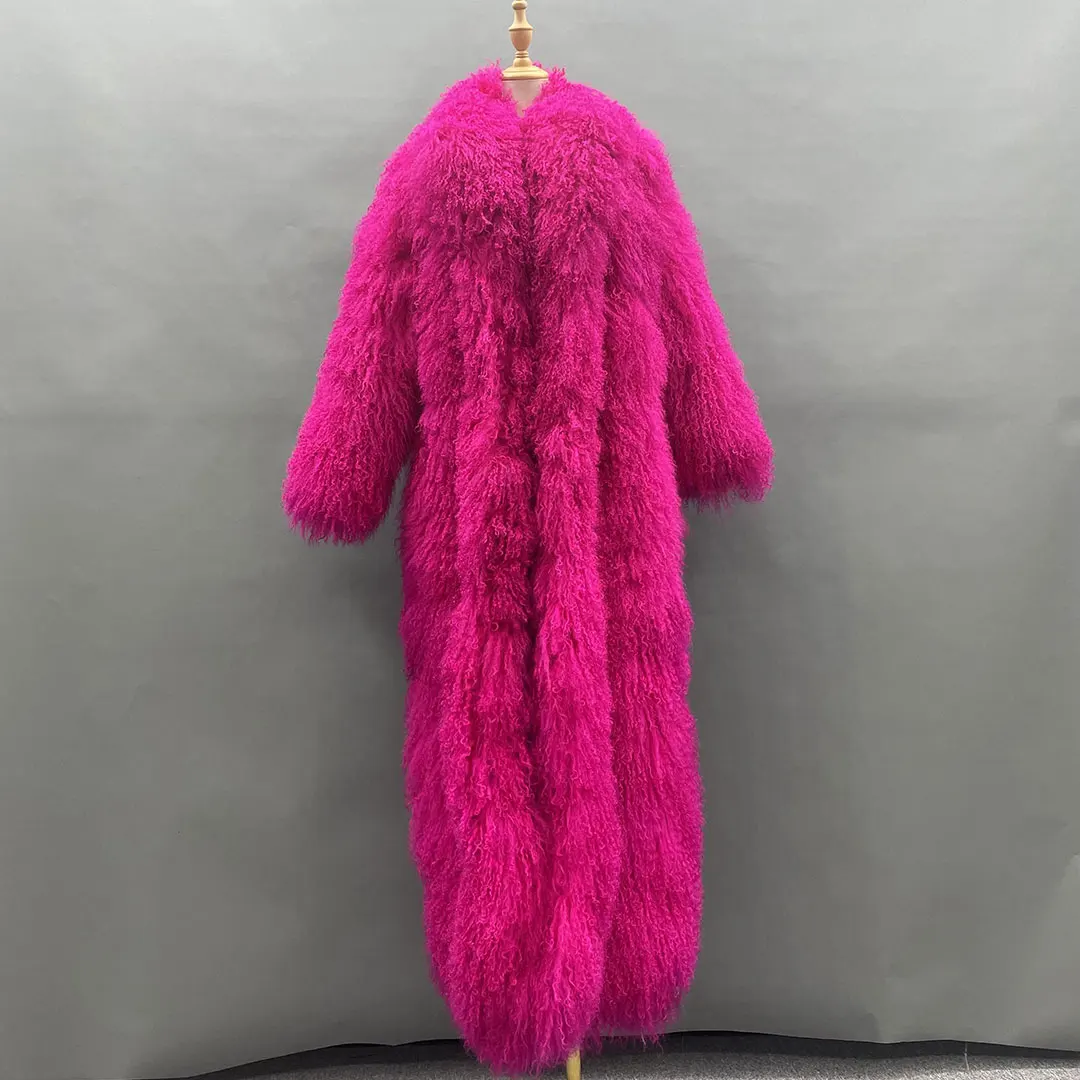Janefur Plus Size Fur Jackets Women Winter Mongolia Sheep Fur Coat Fashion Fur Coat