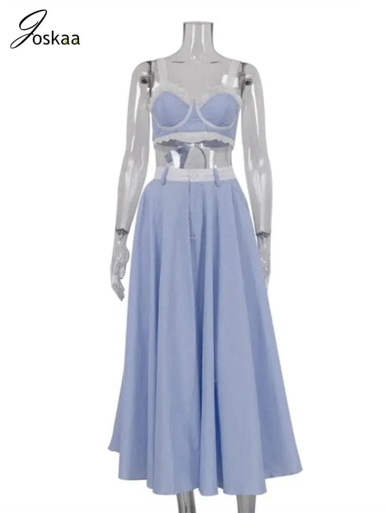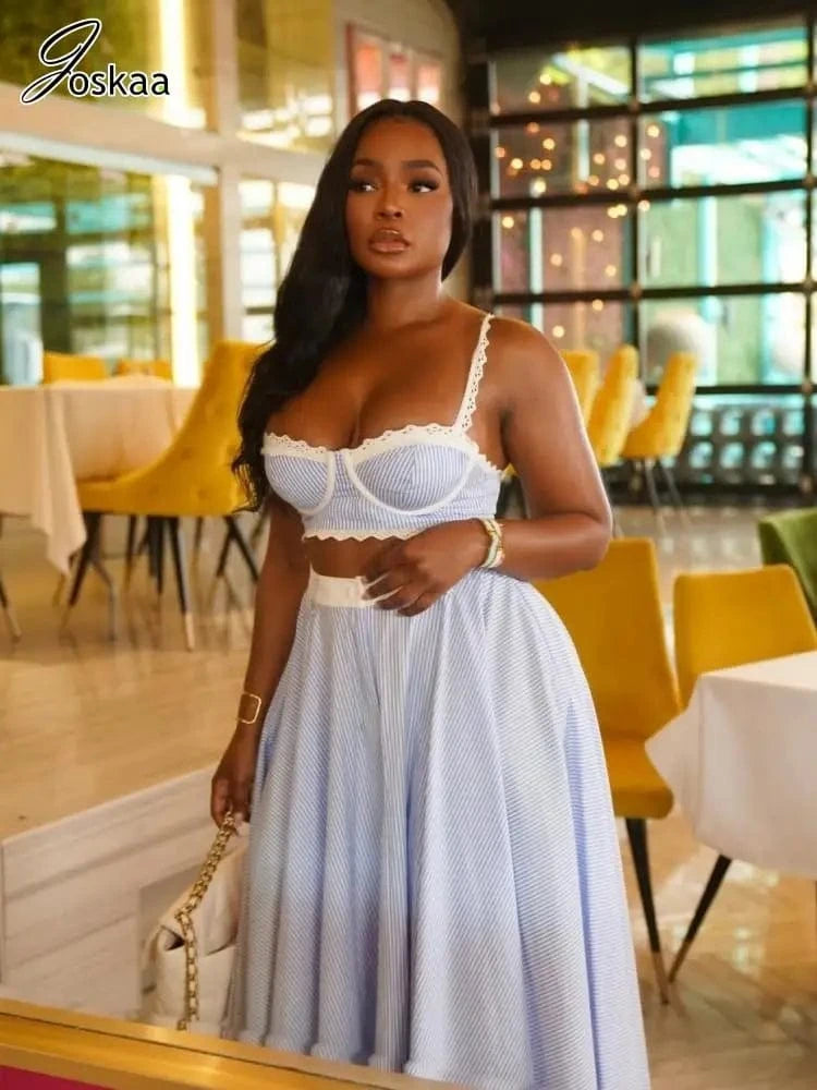 Joskaa 2025 Women's Plaid Print Two Piece Set Sexy Lace Trim Crop Tank Top+High Waist Flare Skirt Match Holiday Y2K Streetwear