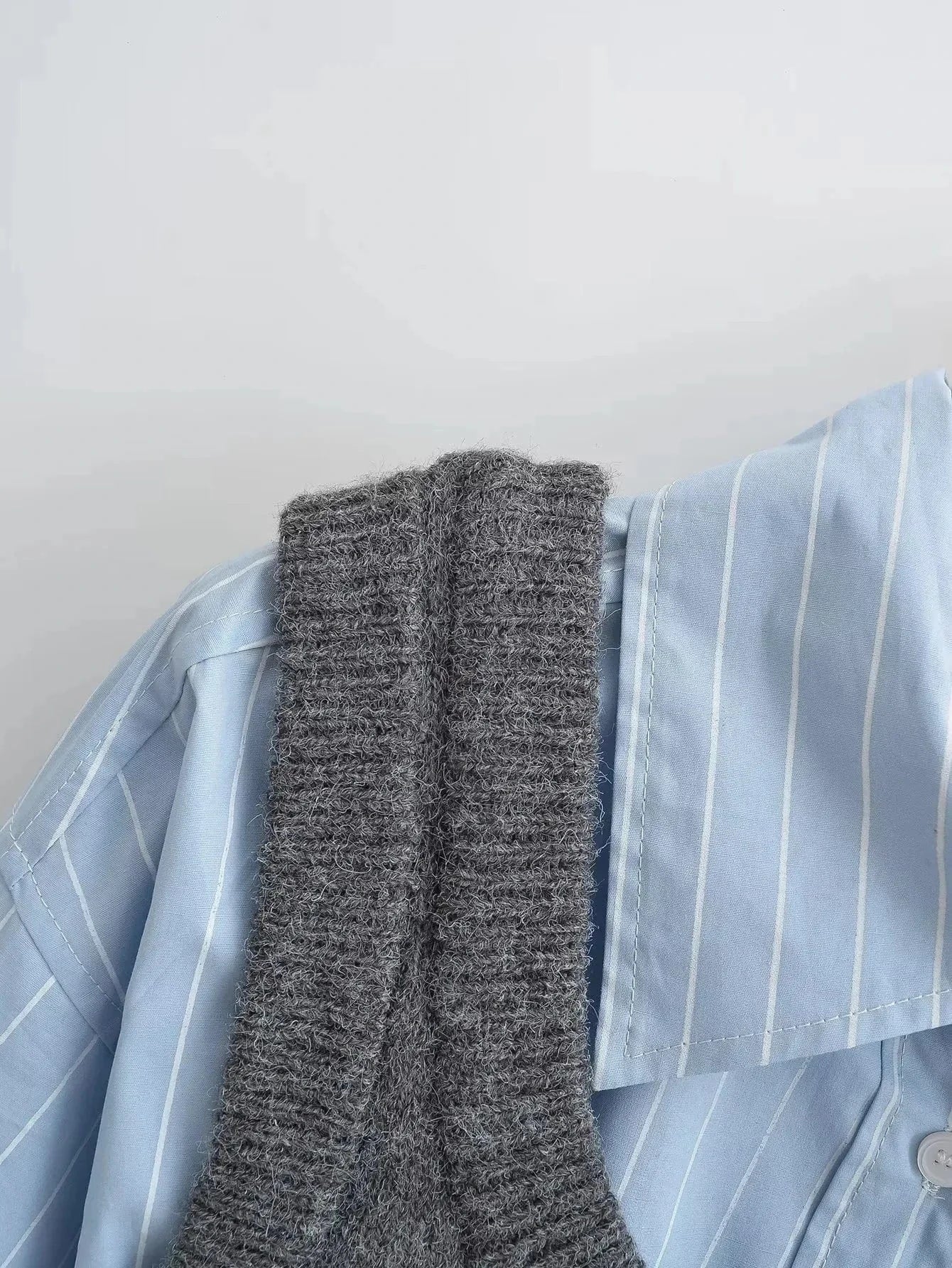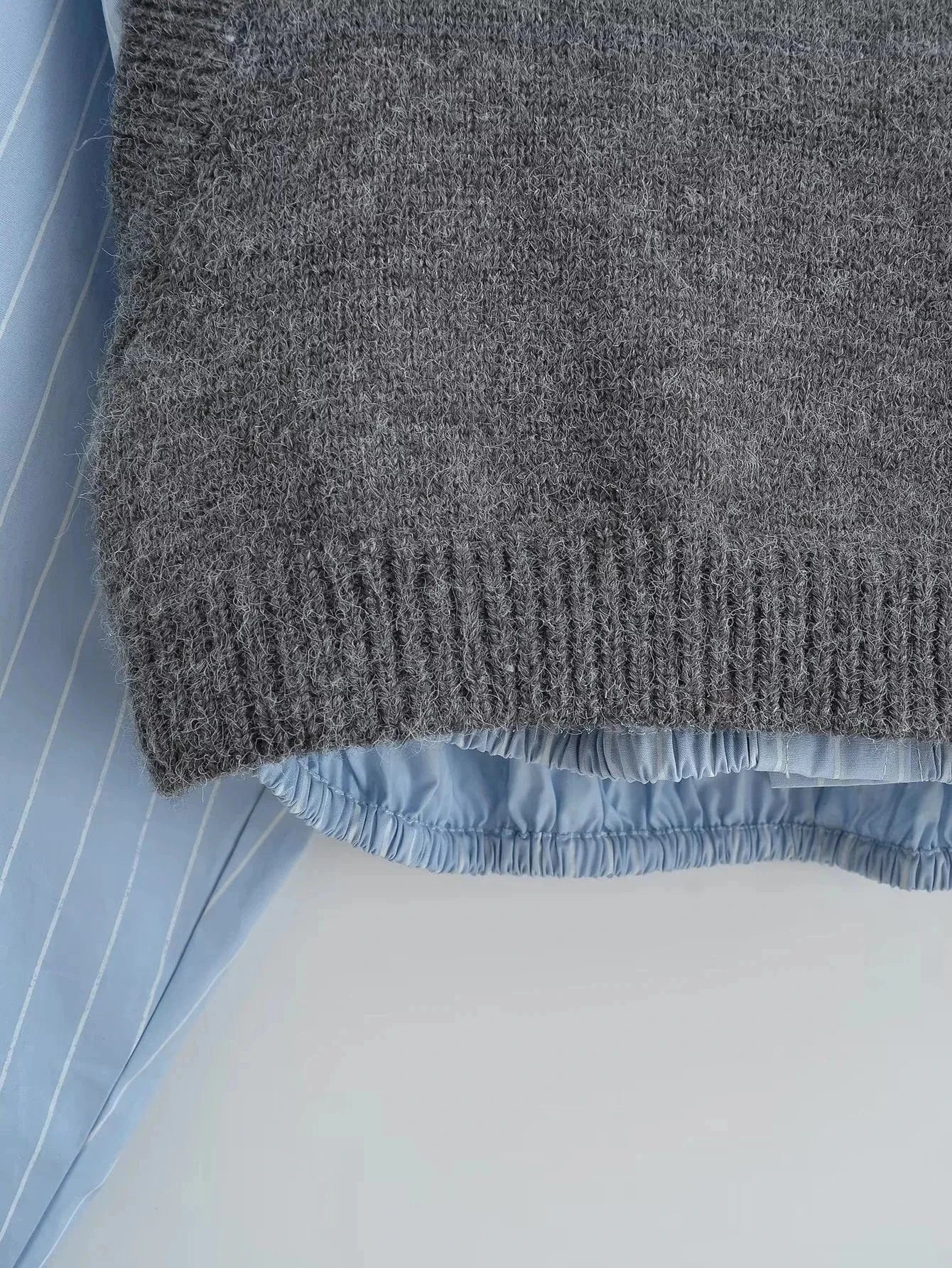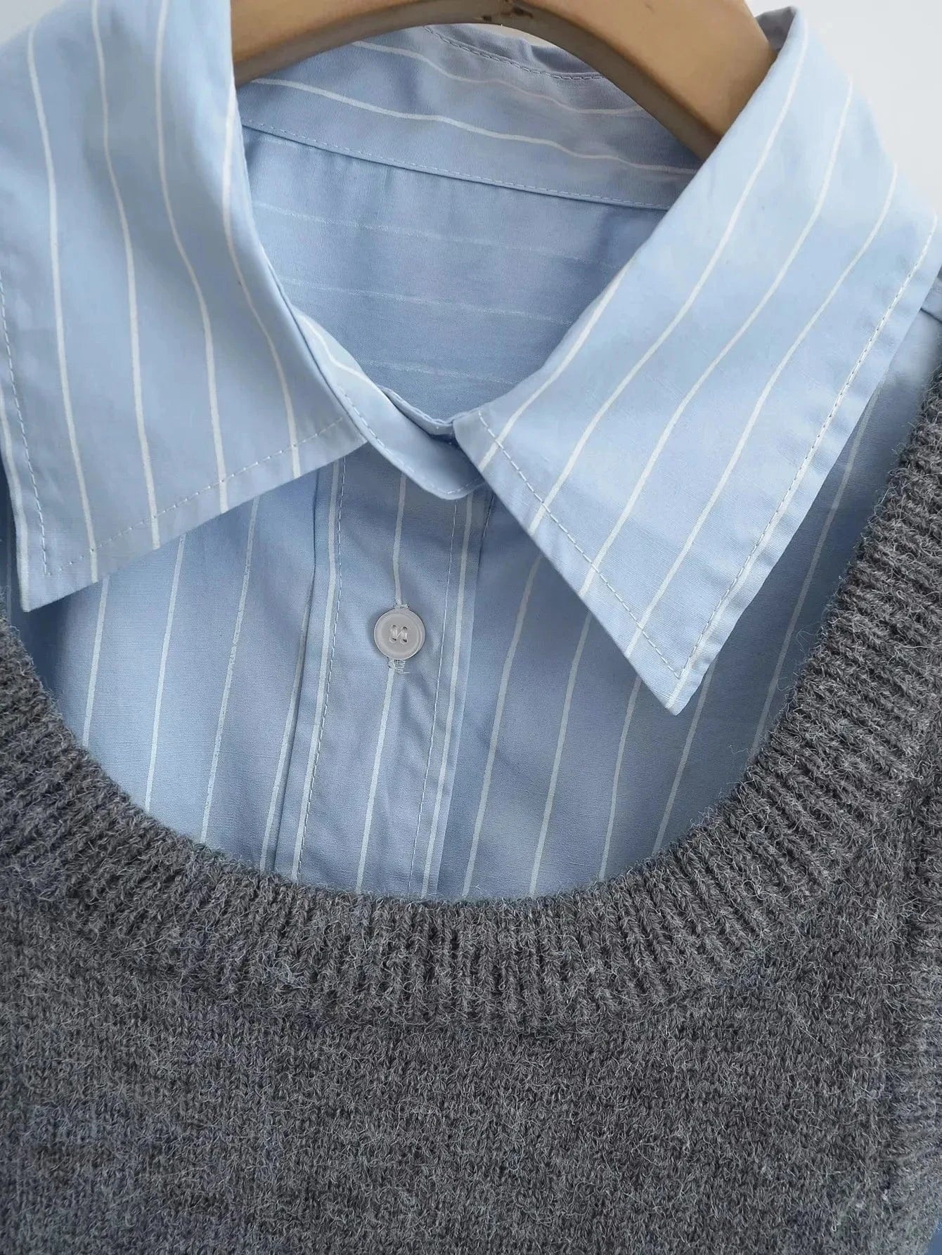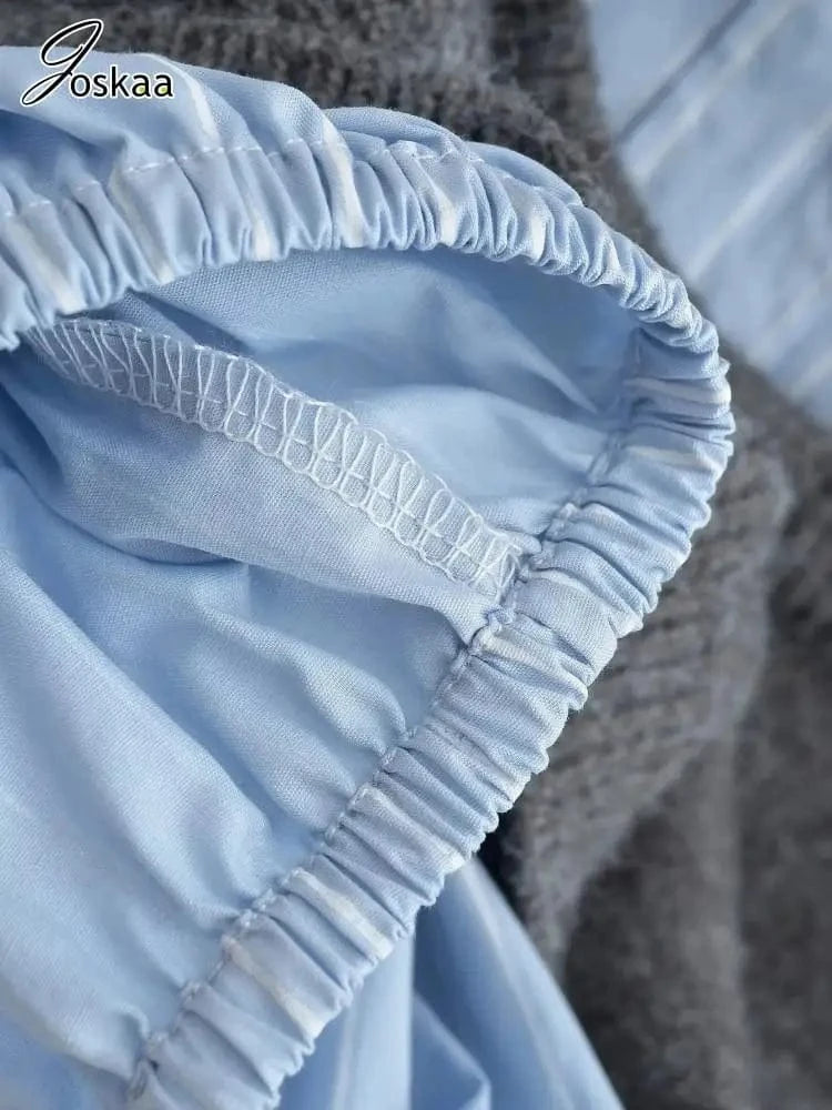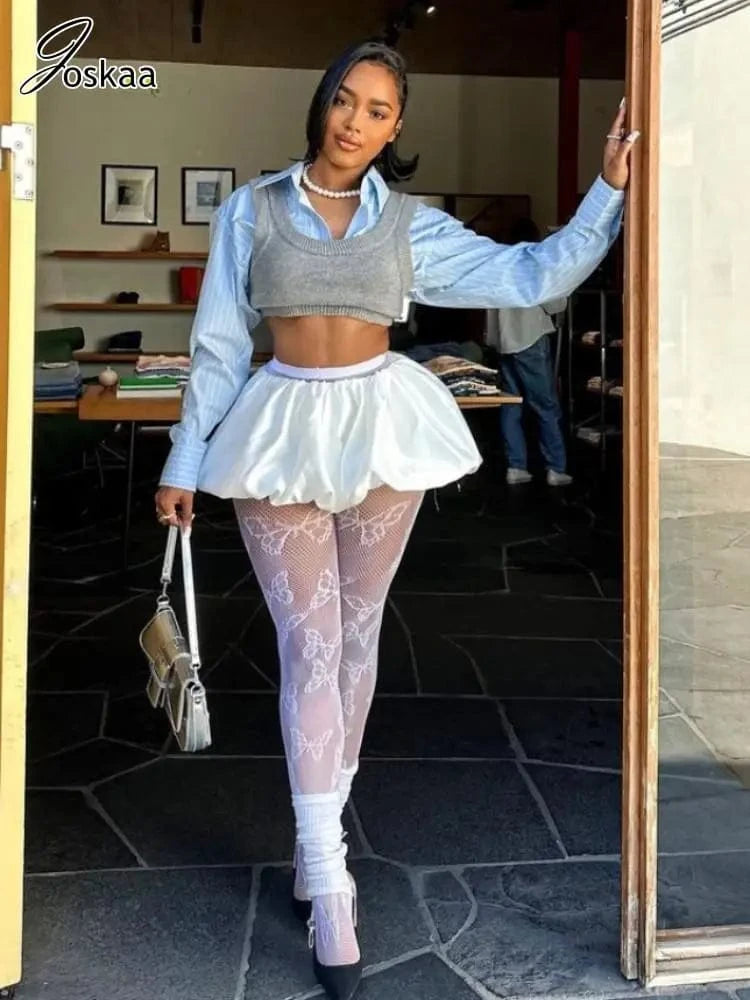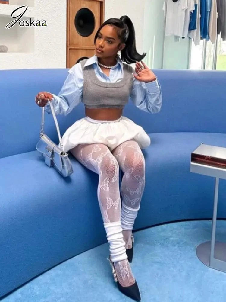 Joskaa Women Lapel Long Sleeve Single Breasted Cropped Shirt with Knitted Vest 2 Piece Set 2024 Summer Fashion Tops Streetwear