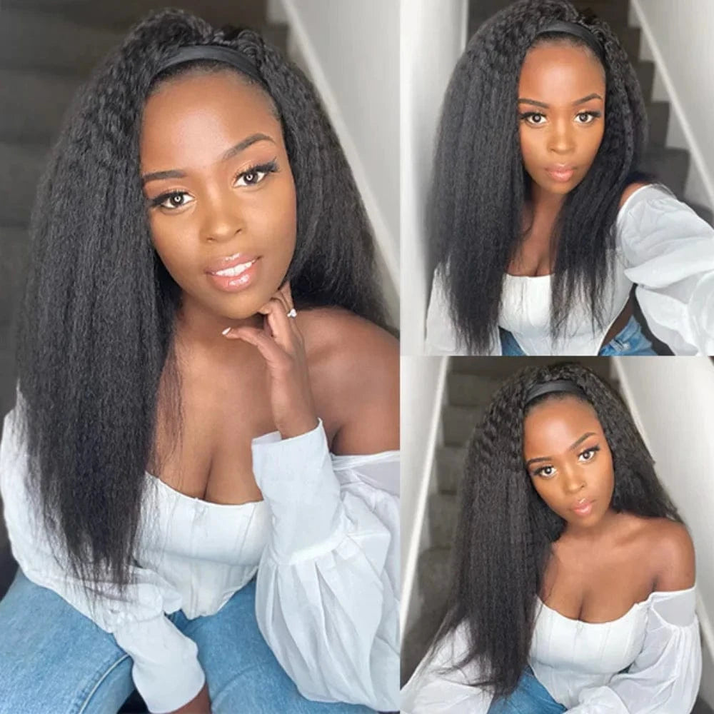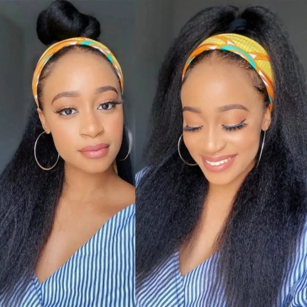 Kinky Straight Headband Wig Human Hair Yaki Headband Wig Full Machine Made Wigs Yaki Natural Color Brazilian Remy Hair Wig 180%