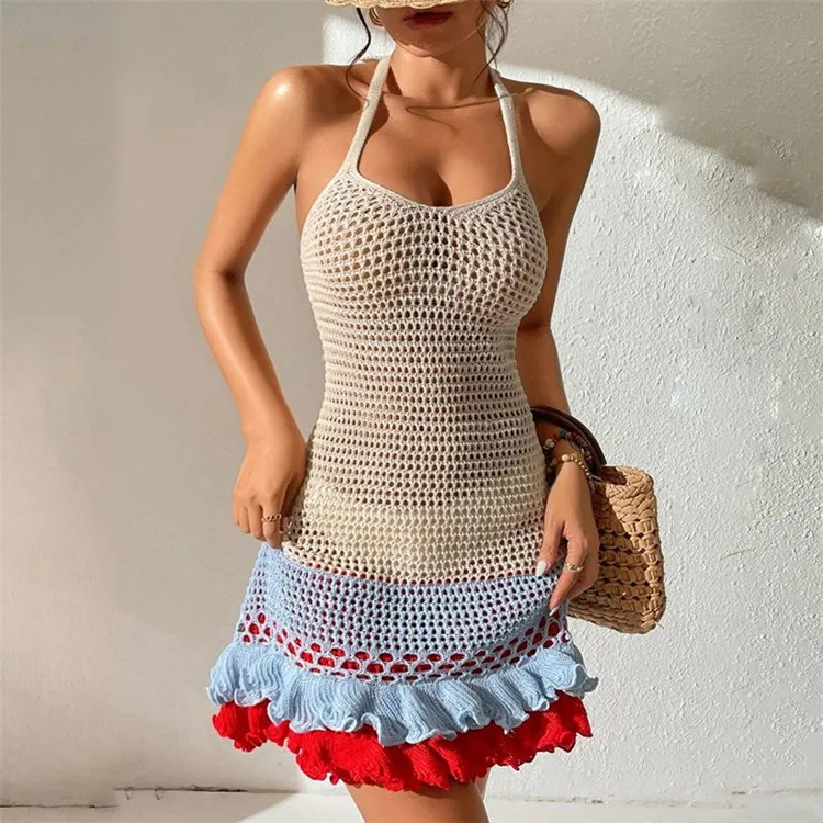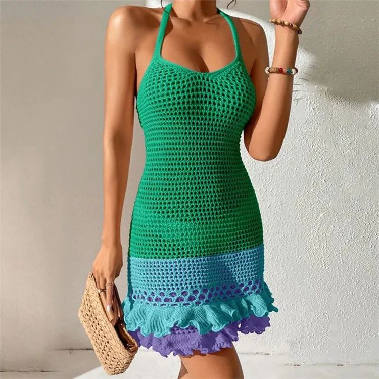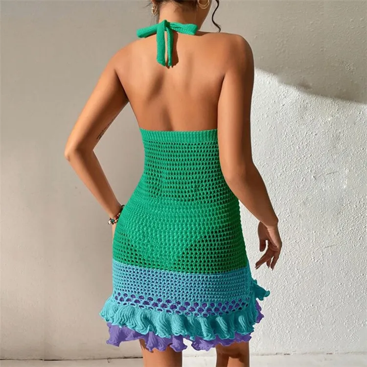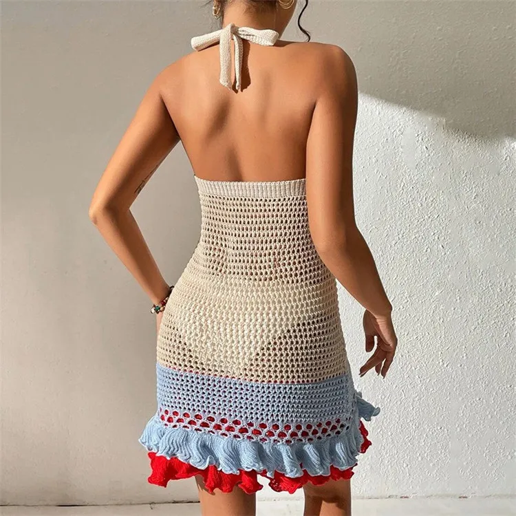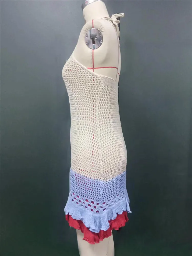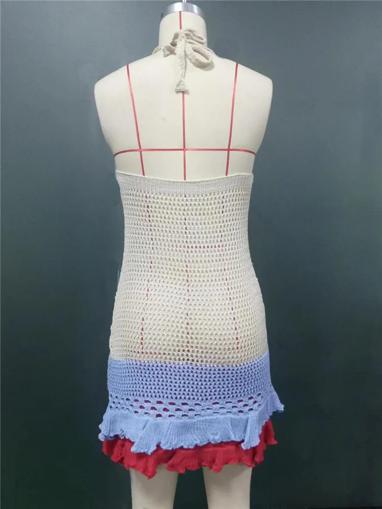 Knit Women Halter Bud Dress Summer Patchwork Skinny Bodycon Vacation Clubwar