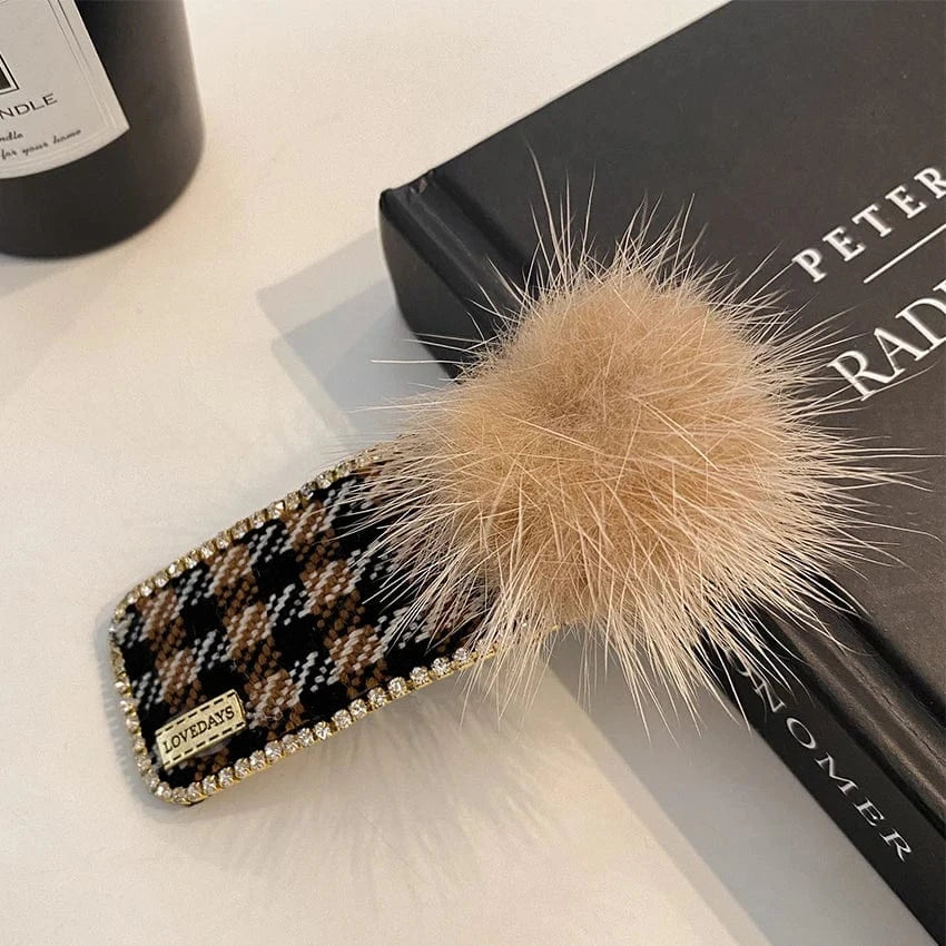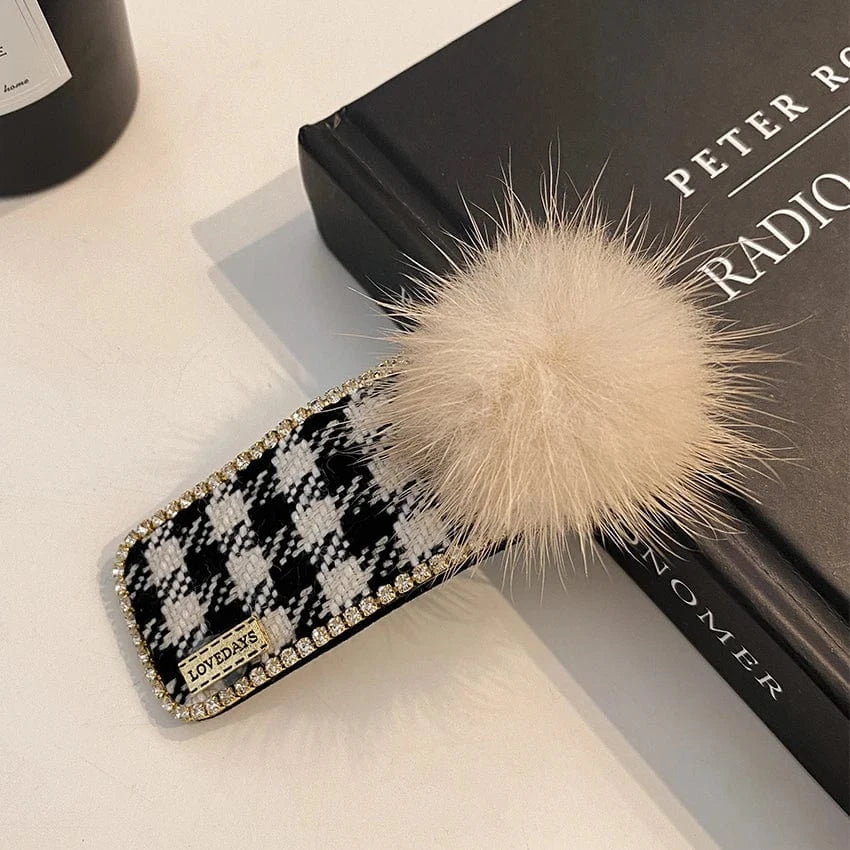 | Product name : | Korean Rhinestone Barrette Lattice Pattern Bobby Hairpin Good Price Soft Fluffy Faux Rabbit Fur Hair Clips For Woman Girls |