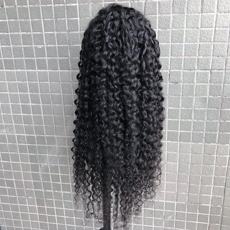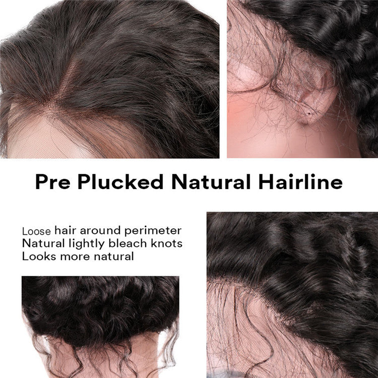 Lace Front Human Hair Full Ends Curly Peruvian Virgin Hair Preplucked Deep Curly 360 Frontal Wig For Black Women