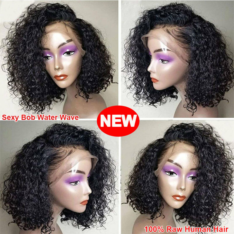 Lace Front Wigs Human Hair Water Wave 13x6 Pre-Plucked Hairline with Baby Hair 150% Density Wavy Bob WigFor Women Natural Color