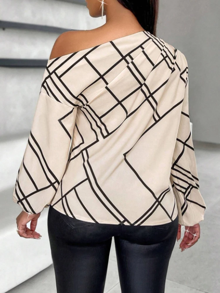 Ladies' Spring/Summer Daily Commuting Elegant Casual Shirt with Striped Print, Pleated and Asymmetric Neckline