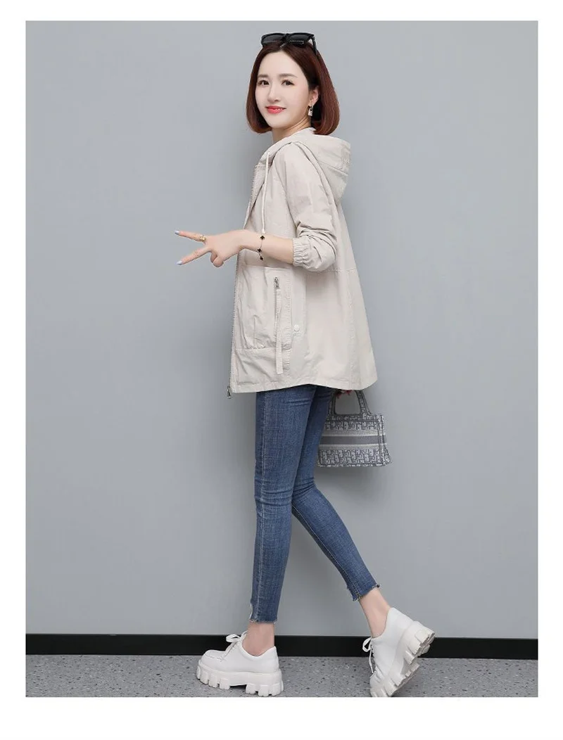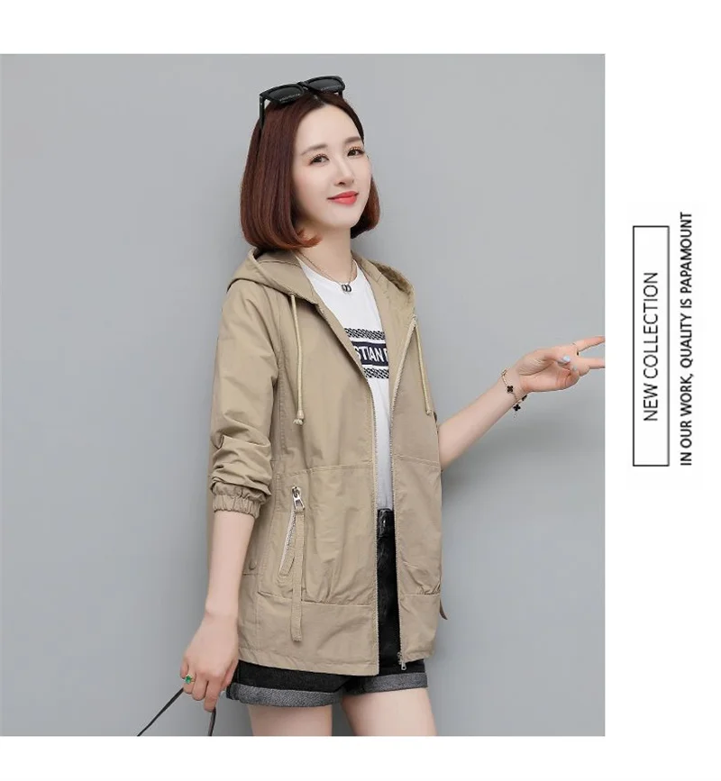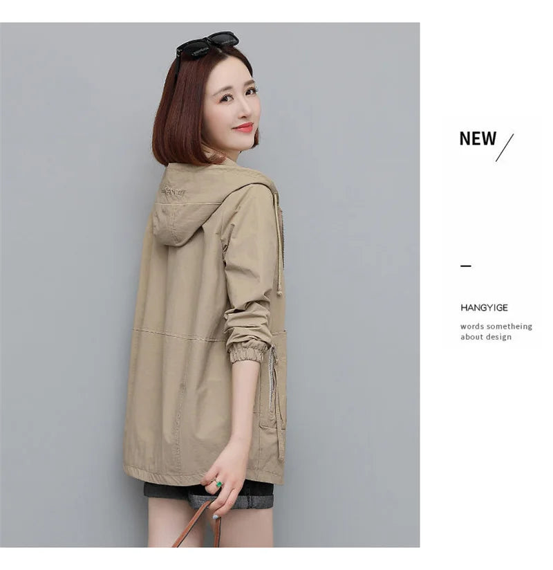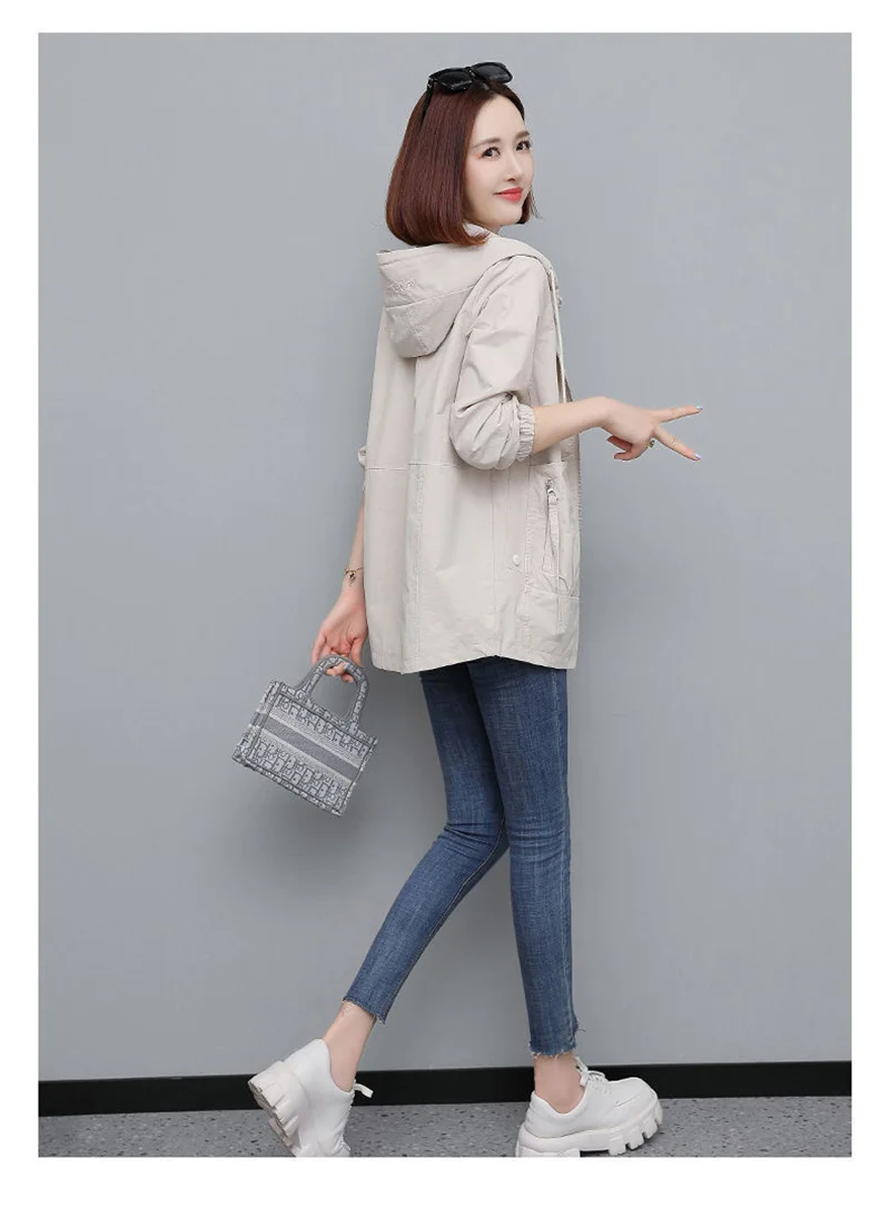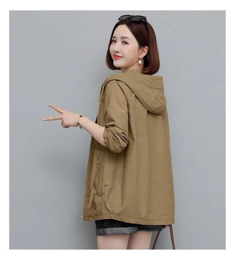 Lining Hooded Coat Female Spring And Autumn Temperament Short Jacket Casual Short Trench Coat Female Hooded Outwear Khaki