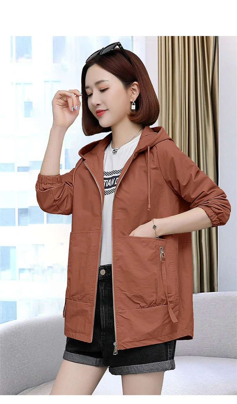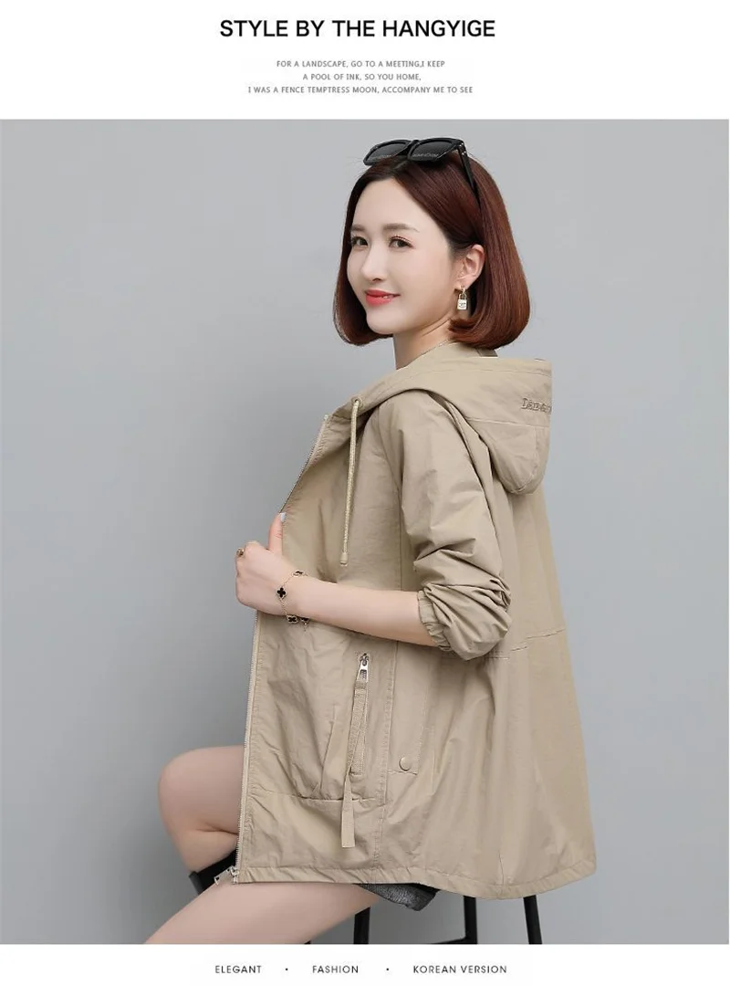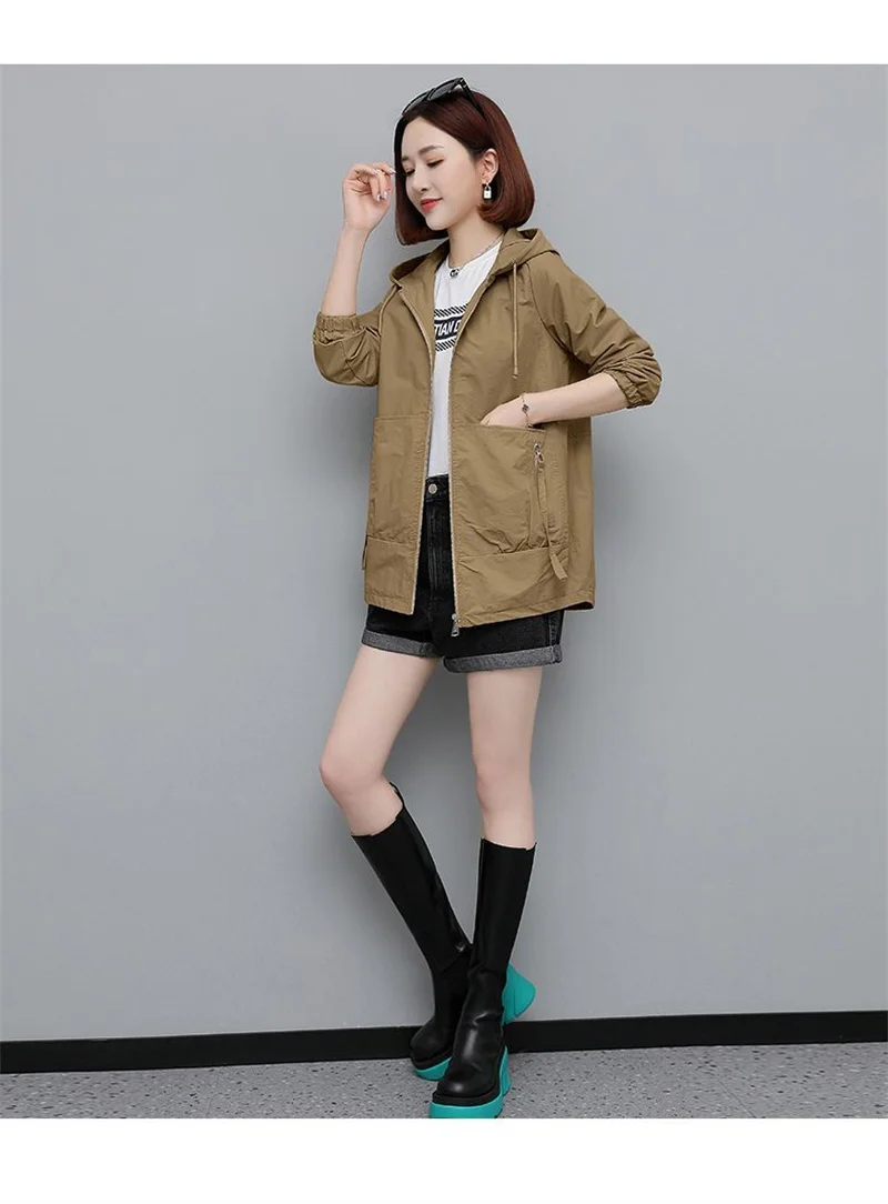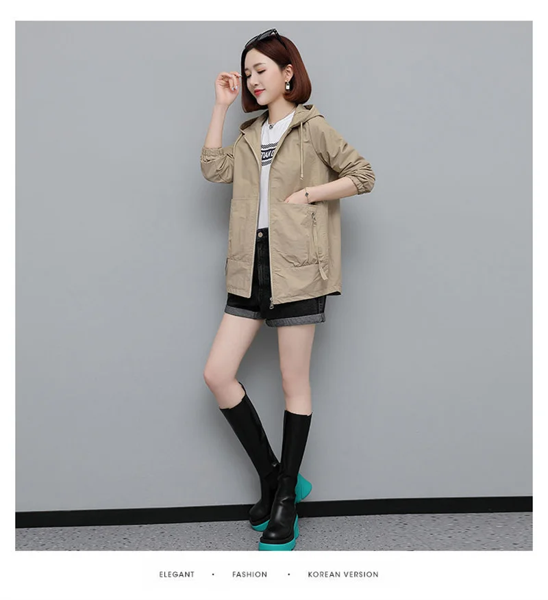 Lining Hooded Coat Female Spring And Autumn Temperament Short Jacket Casual Short Trench Coat Female Hooded Outwear Khaki