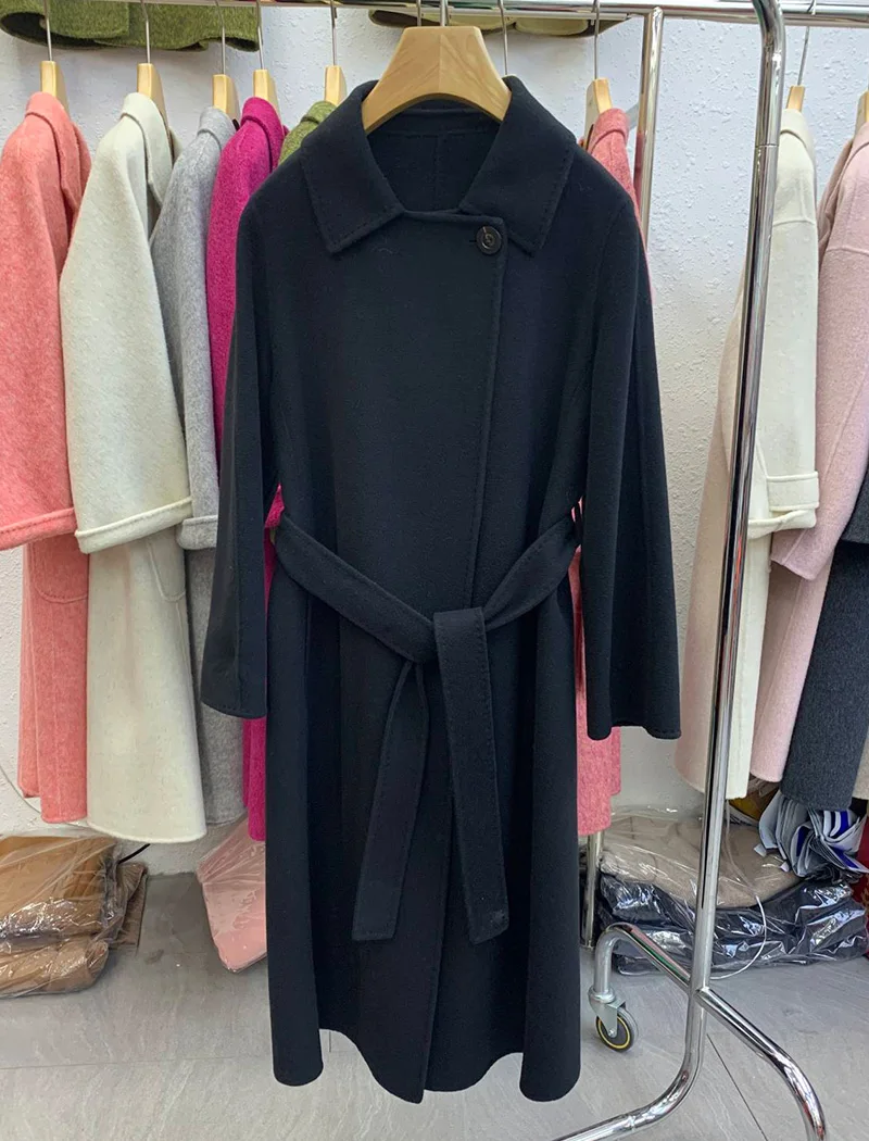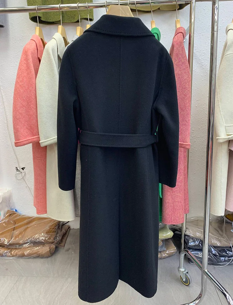 Luxury Belted Extra Long Cashmere Coats Elegant Oversized Women Cashmere Coats