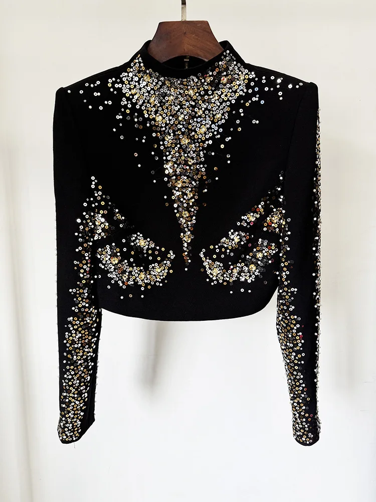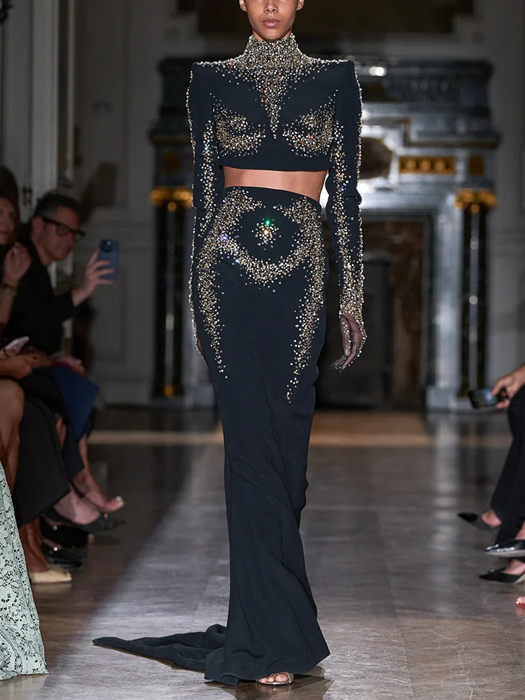 Luxury Sequin 2 Piece Set Women Long Sleeve Jacket Coat Mermaid Fishtail Maxi Skirts Suit 2pcs Outfits Formal Evening Dresses
