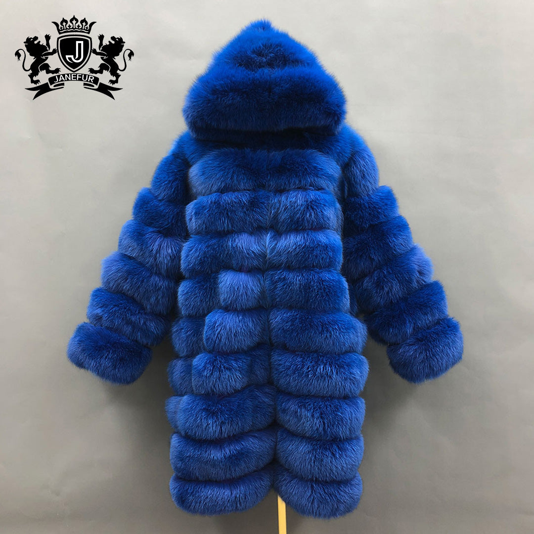 Janefur Winter Warm Long Hooded Coat Plus Size Real Fox Fur Long Fur Hooded Coat