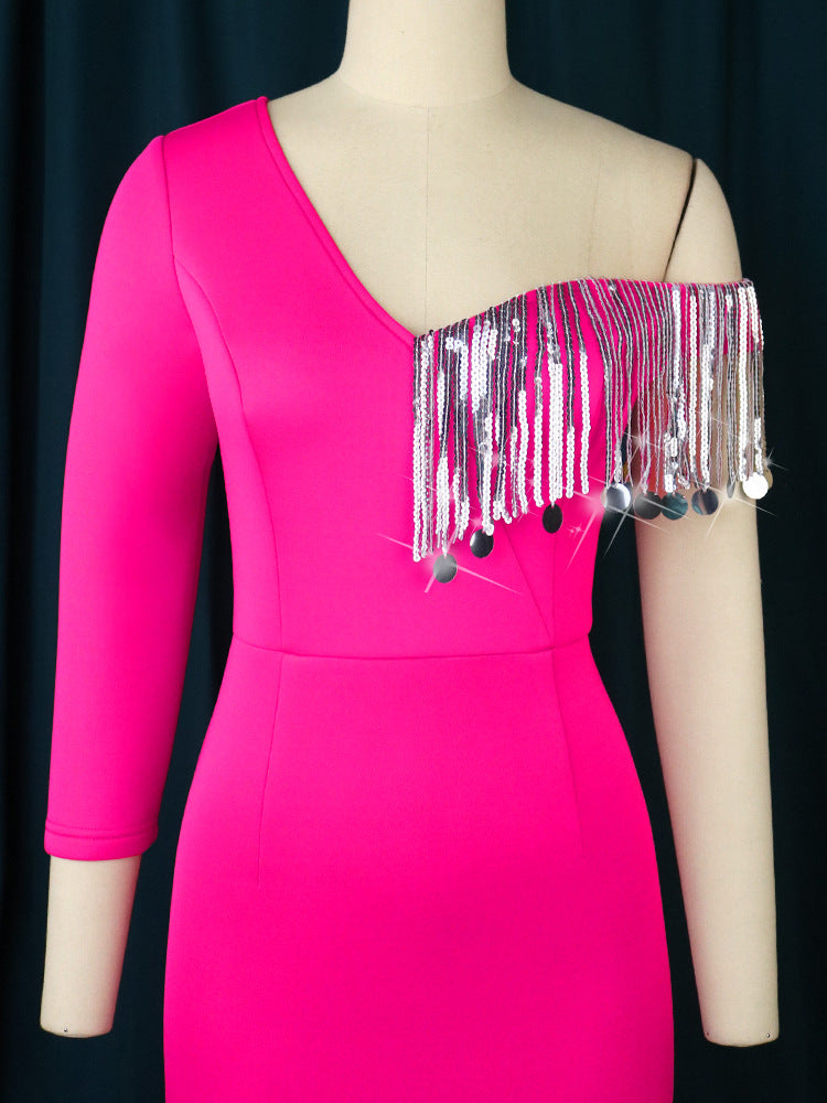 Vestido de mujer de talla grande maxi asimétrico con borlas de invierno elegante sirena