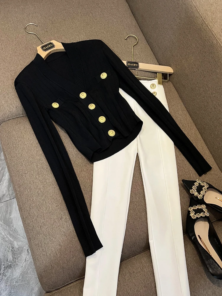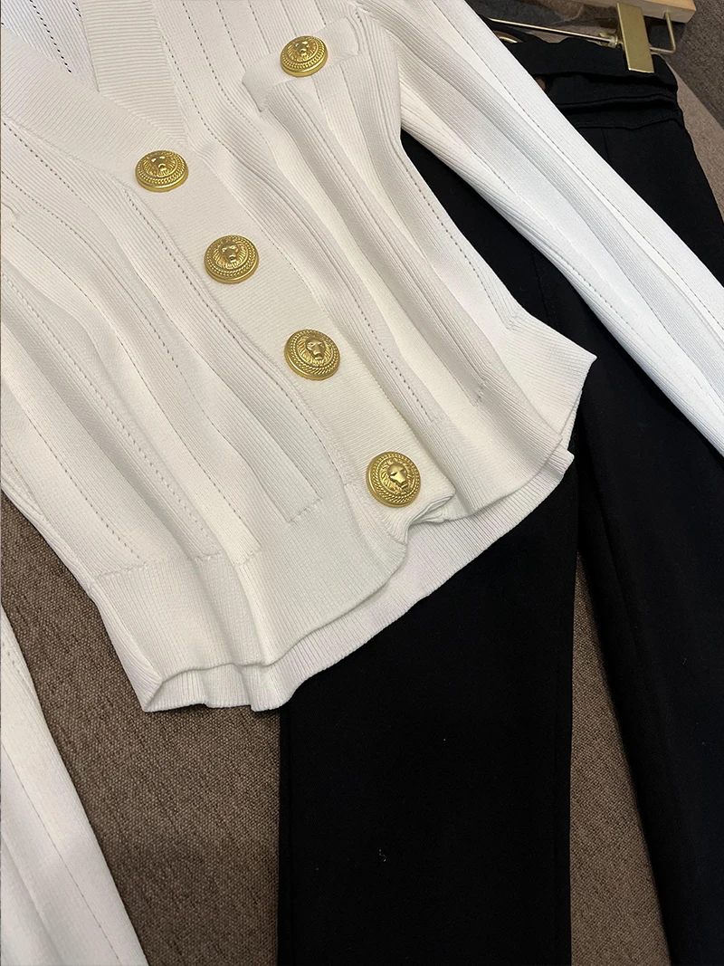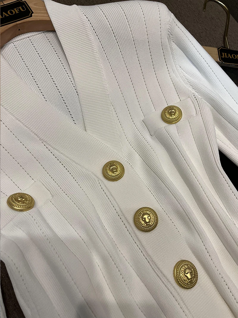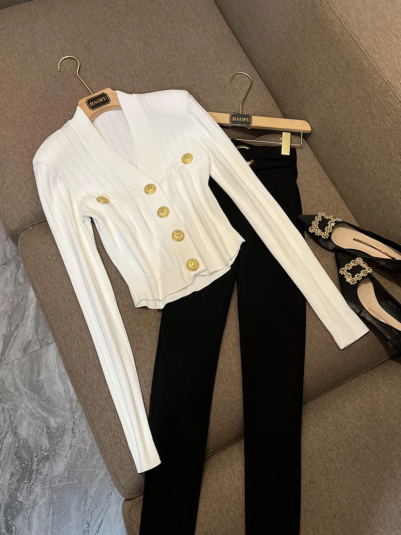 New Arrival All Match Solid Top V-neckline Fine Workmanship Single-breasted Long Sleeve Women Knit Cardigan