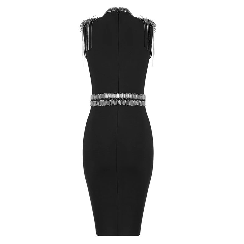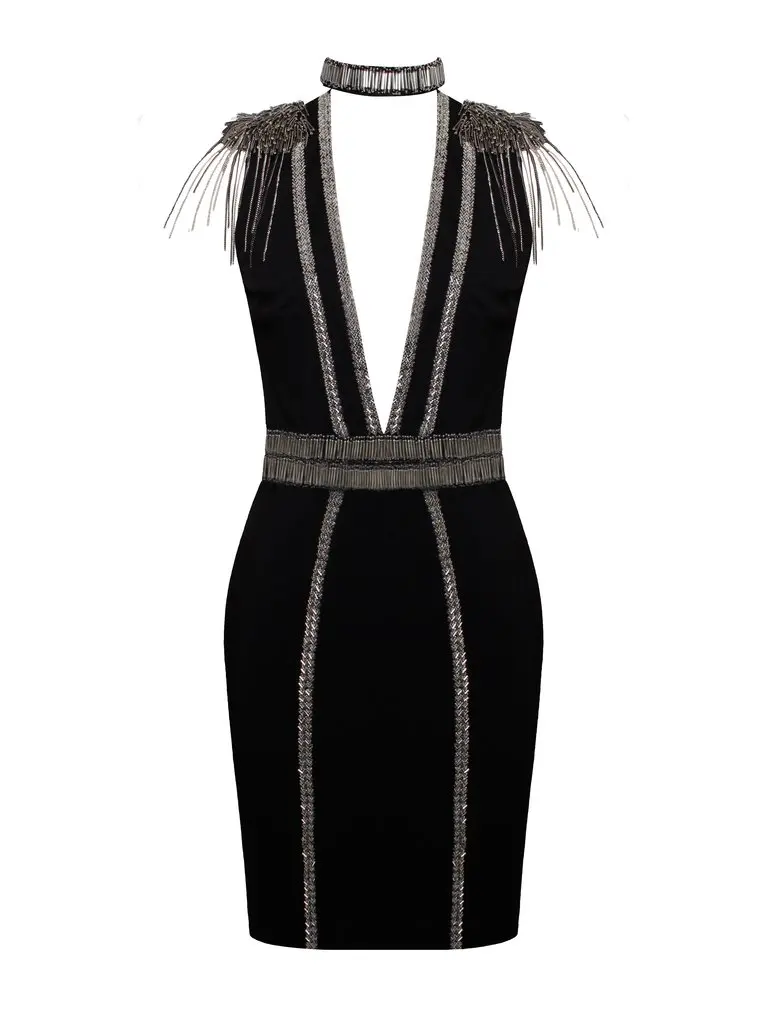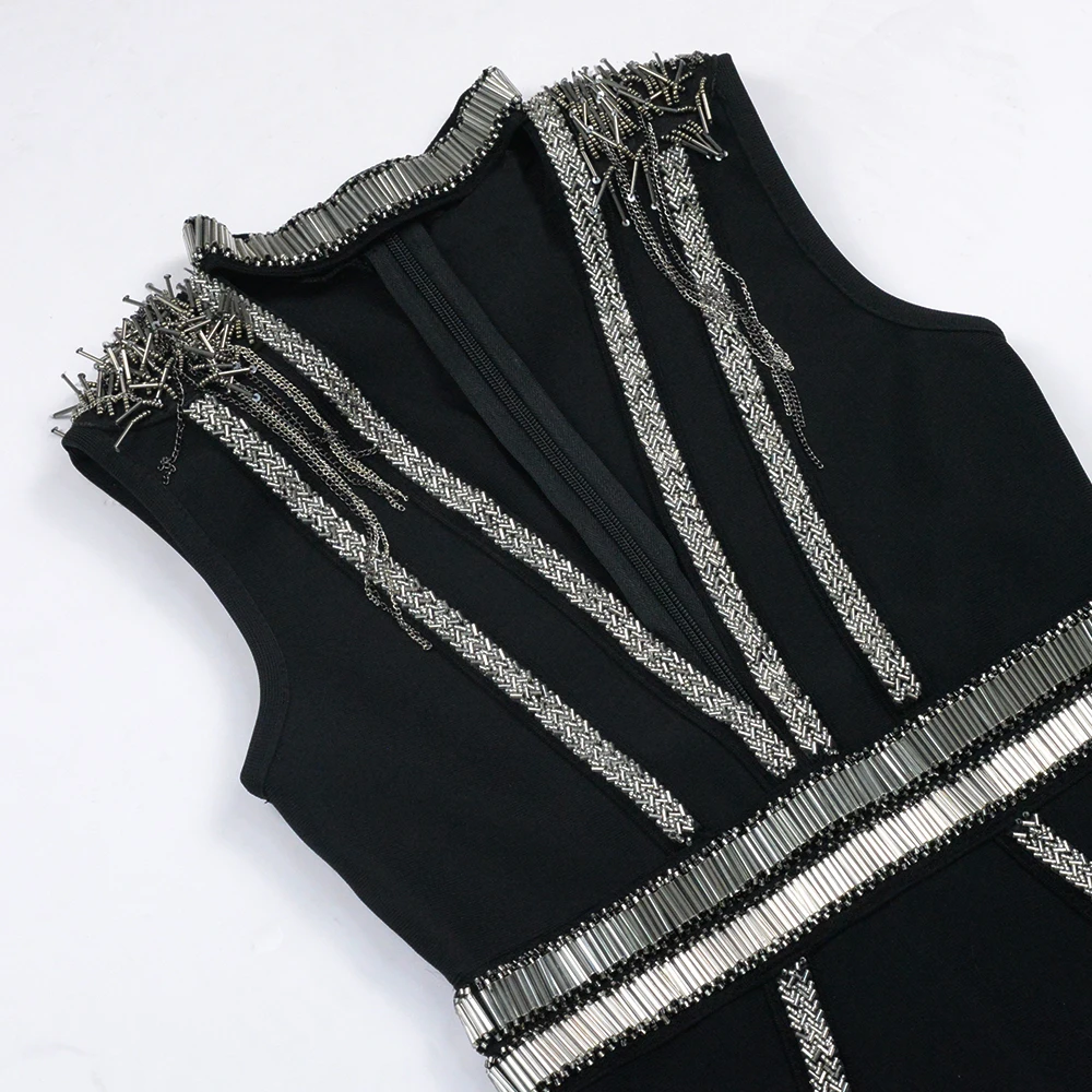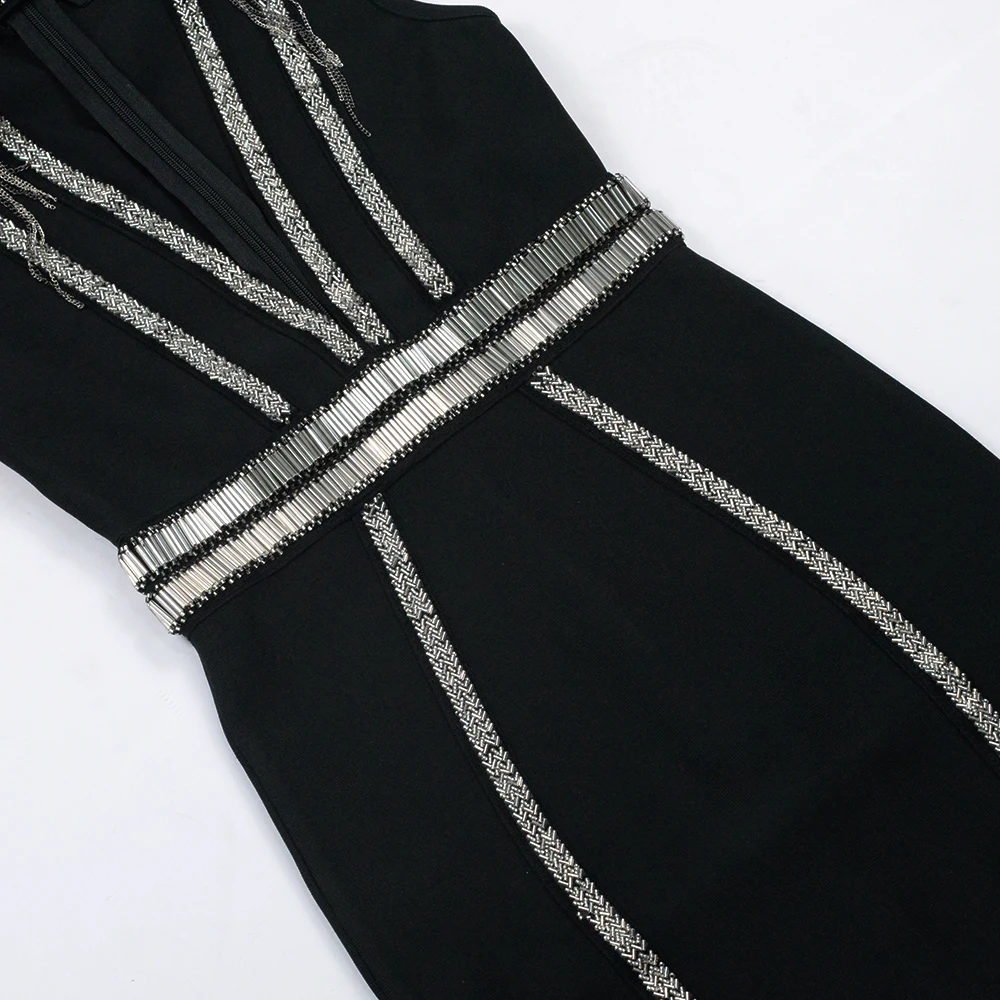 New Arrival Sexy Women Dress Hand Beading Sleeveless V-neck Bodycon Bandage Dress Evening Party Mini Dress