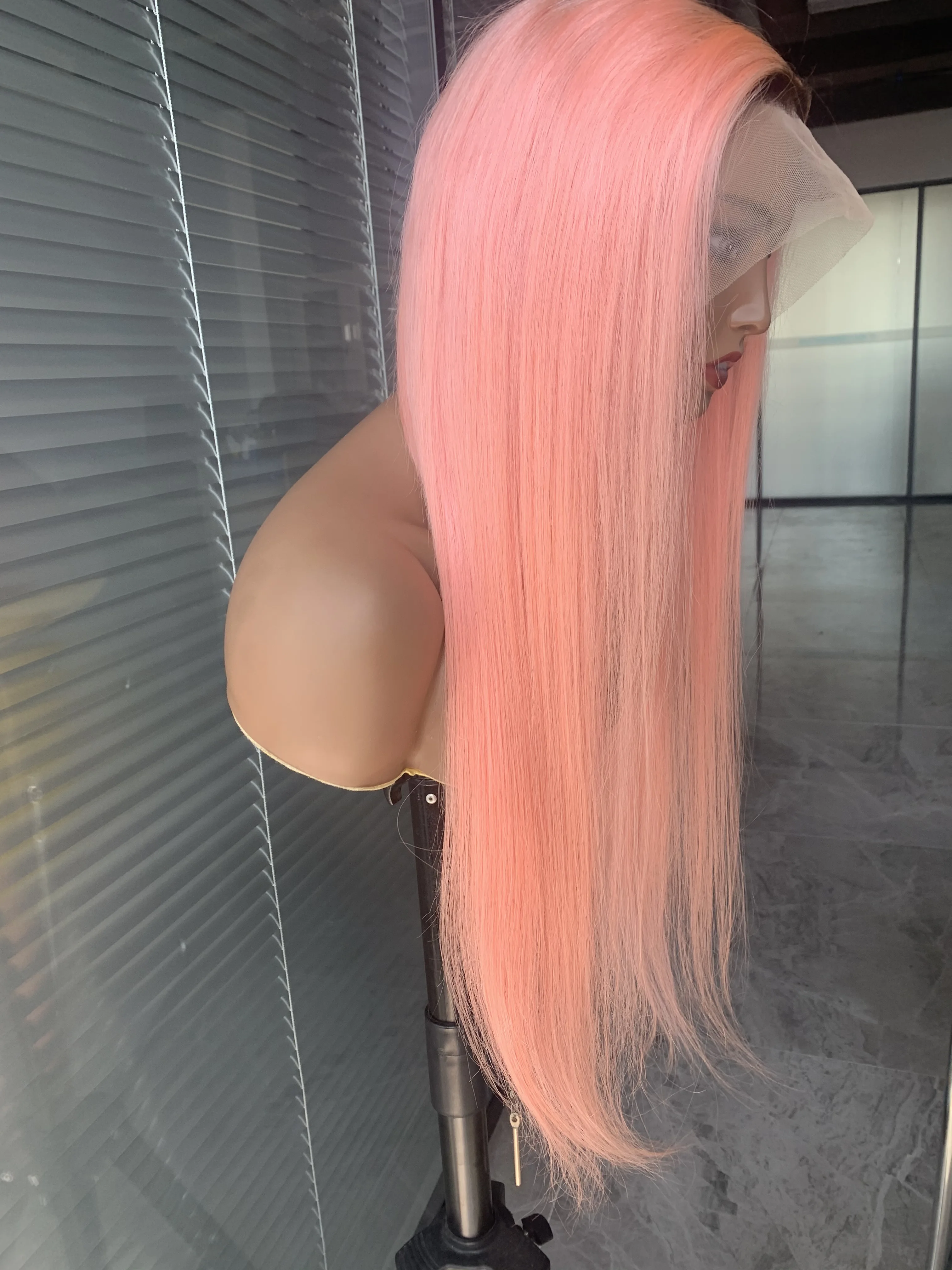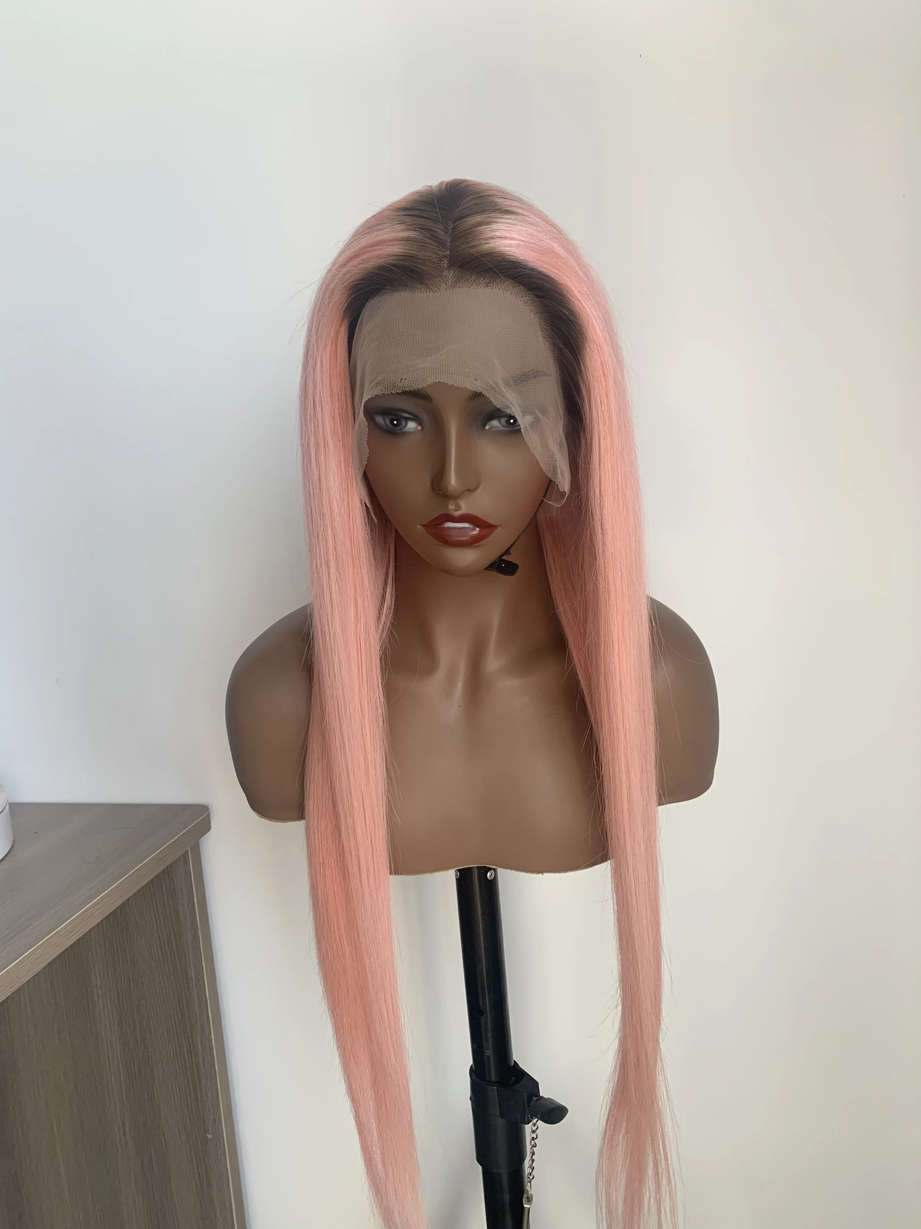 New Fake Scalp Human Hair Lace Frontal Wigs Vendors Wholesale Long hair Ombre Pink Remy Human Hair Wigs