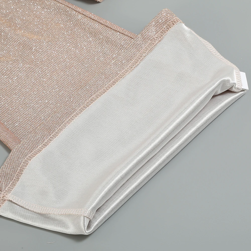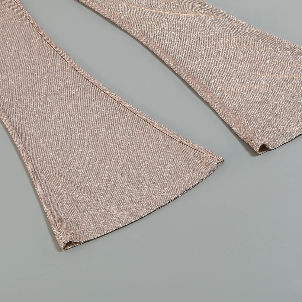 Dazzle at every event with this champagne - hued jumpsuit! Made from a glitter - infused, stretchy fabric, it shimmers beautifully under the lights while ensuring a comfy, figure - hugging fit.