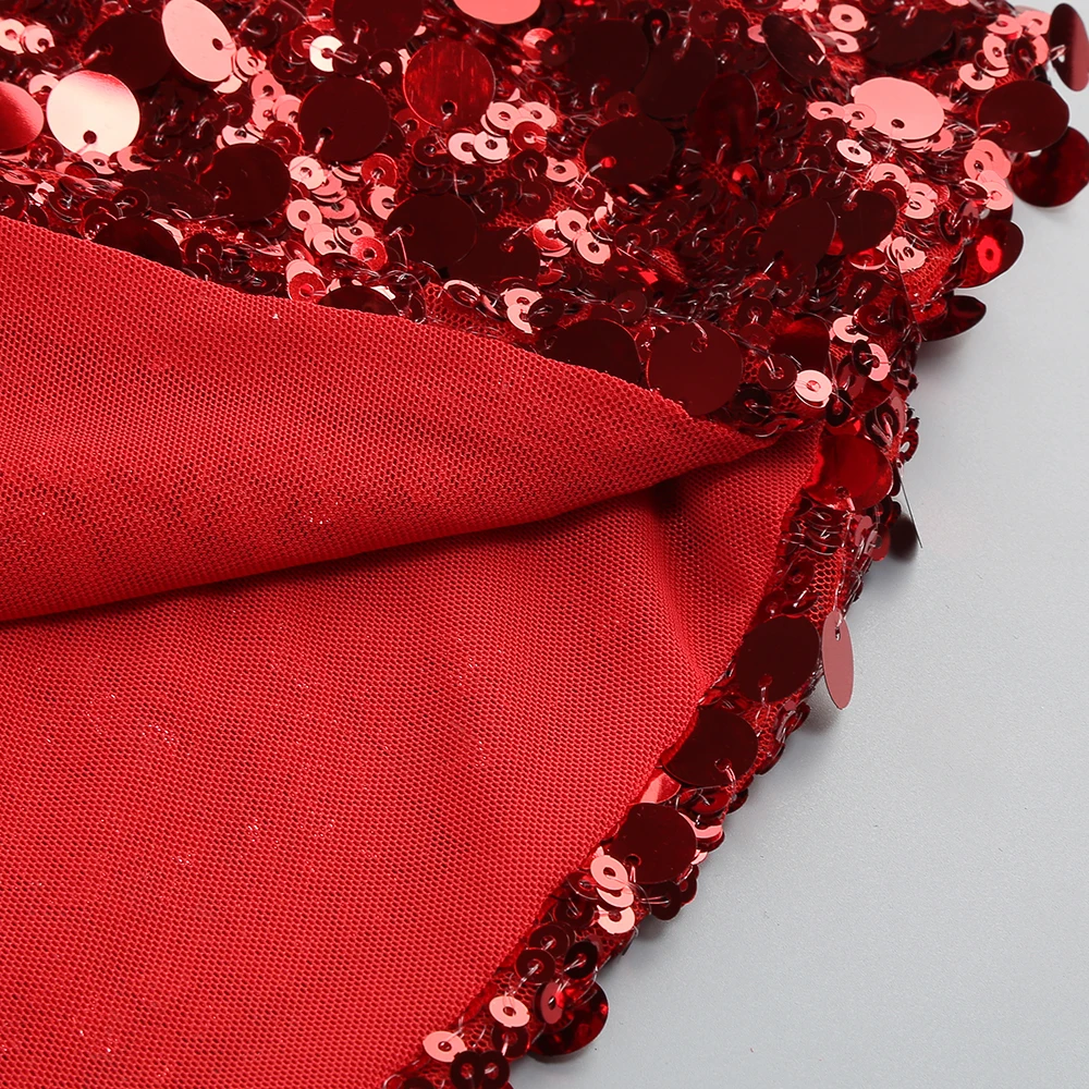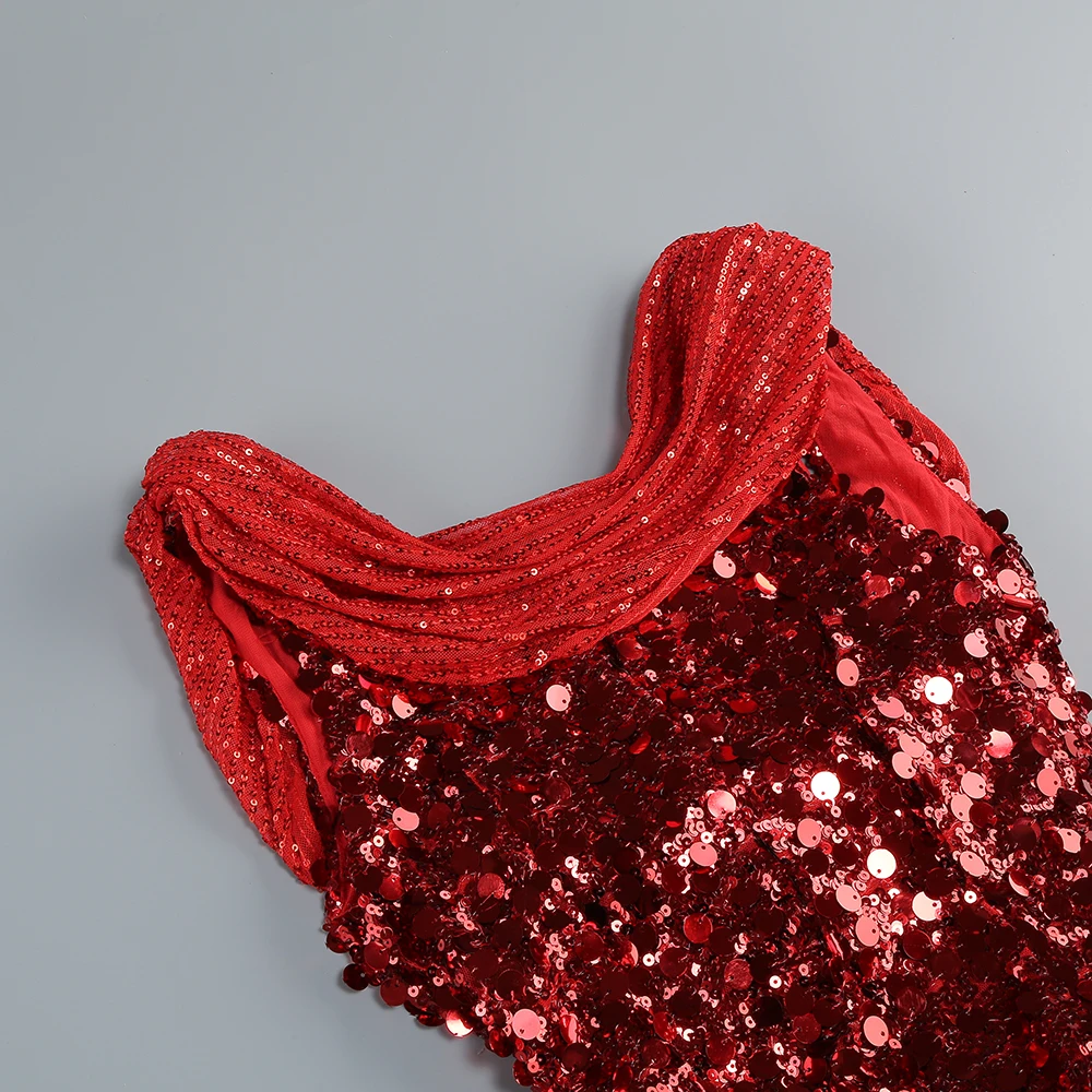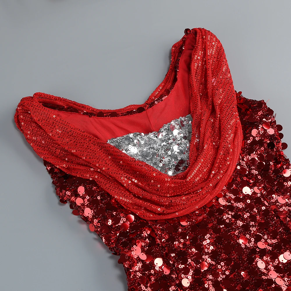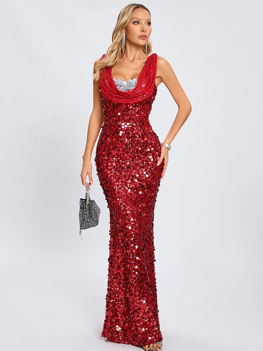 New Women's Splicing Sequins Red Swing Collar Halter Sleeveless Dress Sexy Luxury Shiny Floor-Length Dress Fashion Banquet