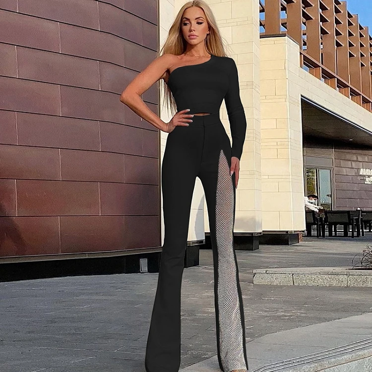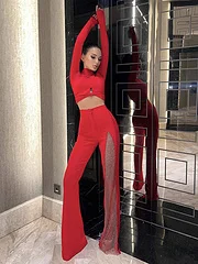 Novance B3168 2023 New Arrivals Floor Length Mesh Beaded Red Pants Plus Size Women'S Pants & Trousers Casual Slim Ladies Pants