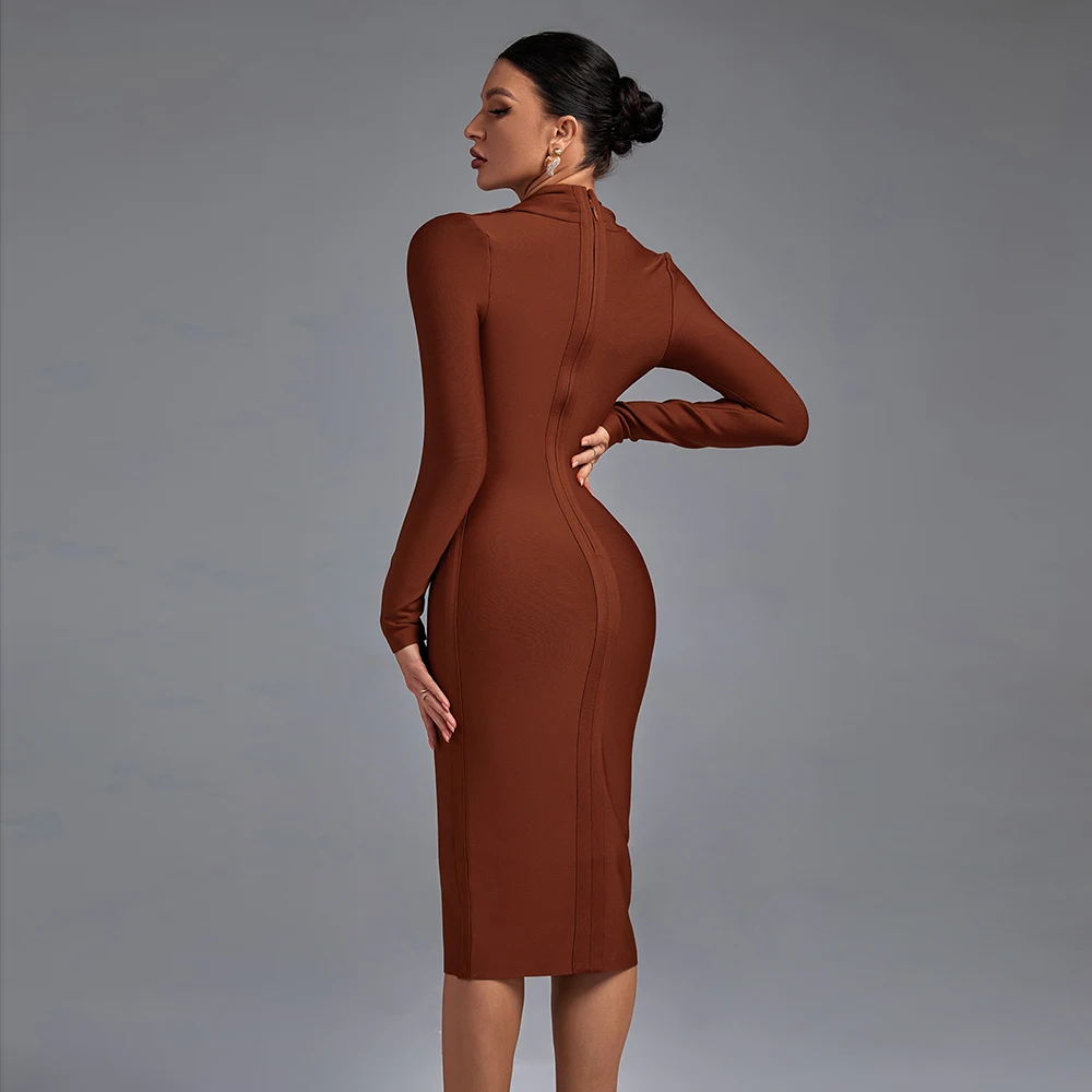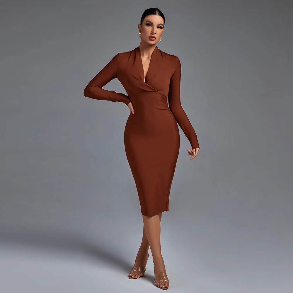 Ocstrade Vestidos Fall Winter Women Long Sleeve Low V Neck Elegant Maxi Bodycon Wedding Evening Bandage Dresses Modern Dress