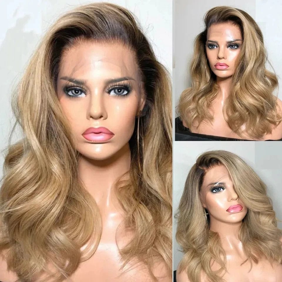 Ombre #1B #27 Transparent 13*4 Lace Front Wig Human Hair Side Part 8--28 Inch Body Wave For Woman