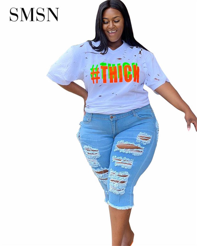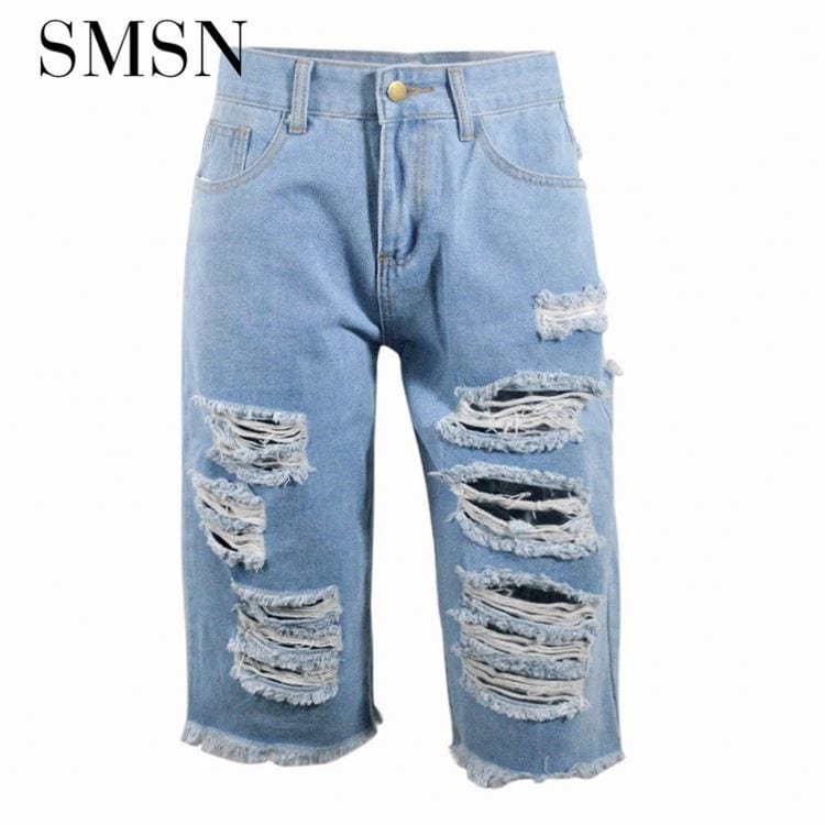 OSINA Best Design Street Sexy Hollow Out Denim Cropped Rough Edge Trousers Knee-Length Plus Size Ripped Women'S Jeans