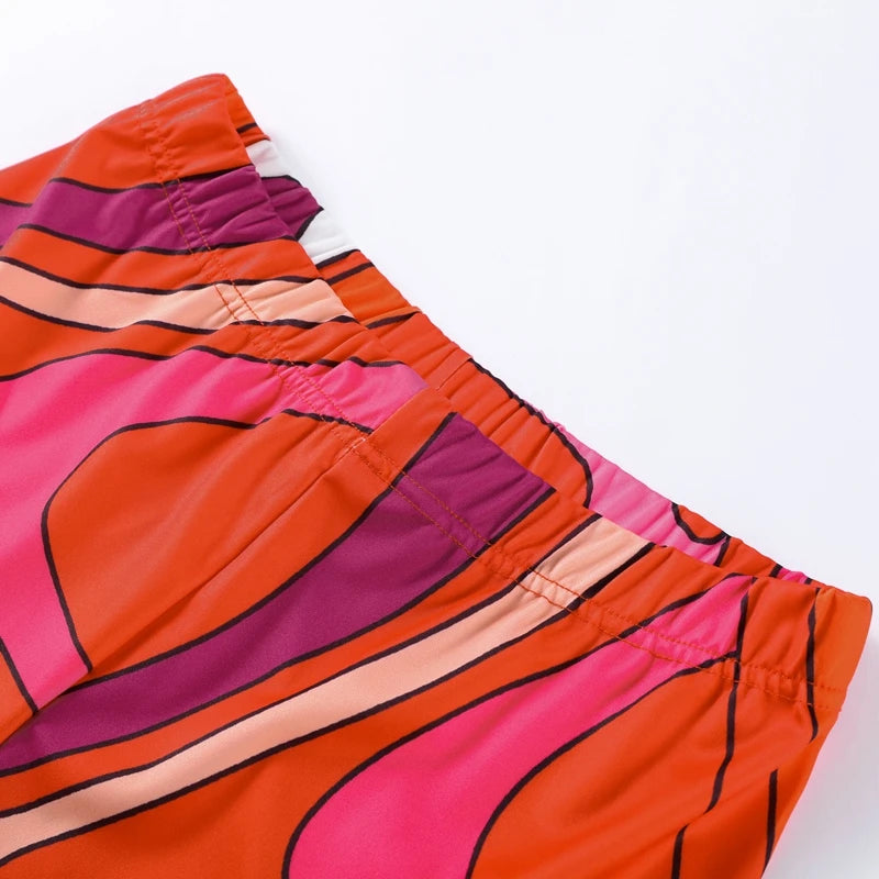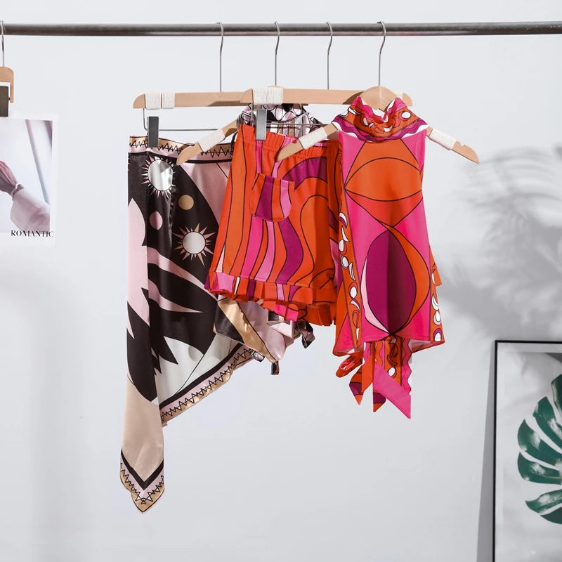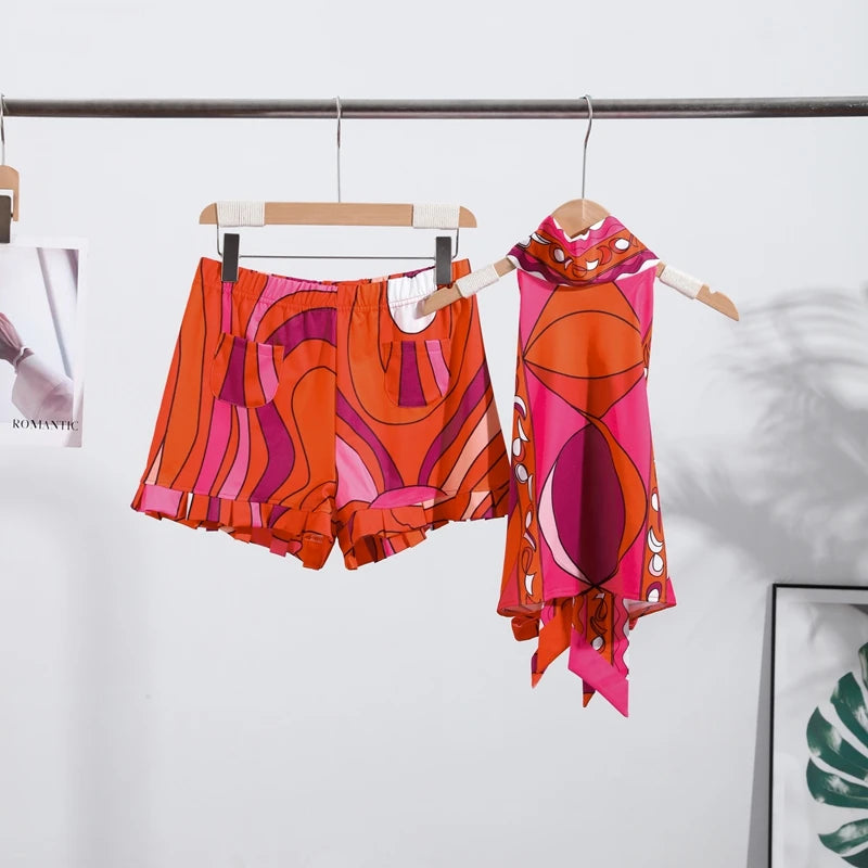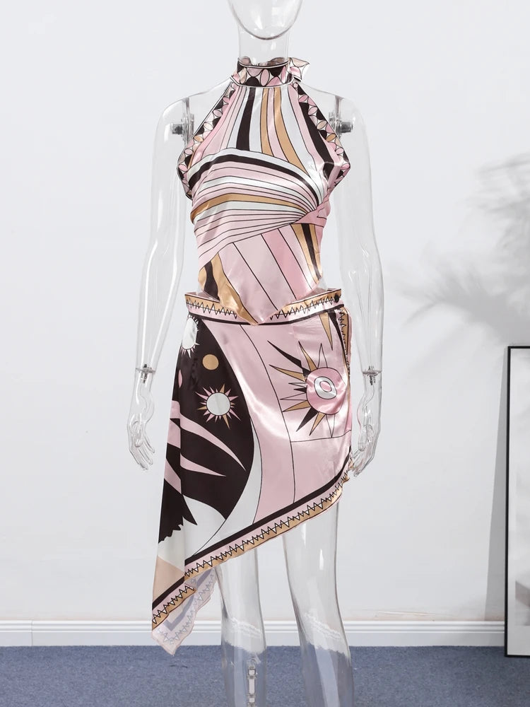 Print Irregular Women's Short Skirt Suits Halter Lace Up Backless Sleeveless Tank Top High Waist Sets Summer Lady Beach Outfits