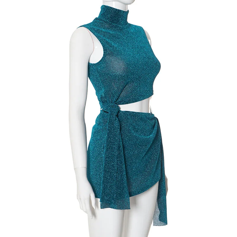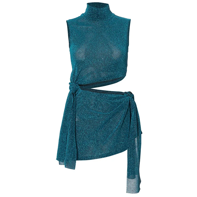 R23ds254 New 2024 Summer Hollow Out Sleeveless Sexy Mini Dress Solid Bodycon Casual Bandage Elegant Dress For Women Lady