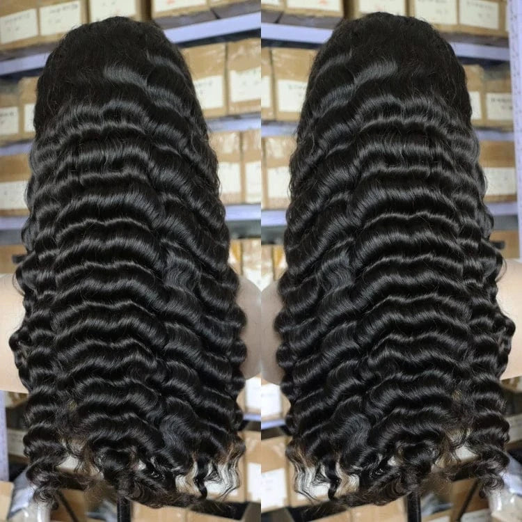 Ready to Ship 11A Grade Virgin Human Hair 180% Density Hd Transparent lace deep wave 13x4 lace front human hair deep wave wig