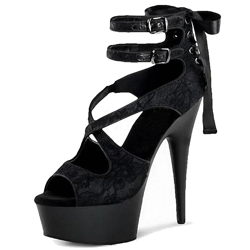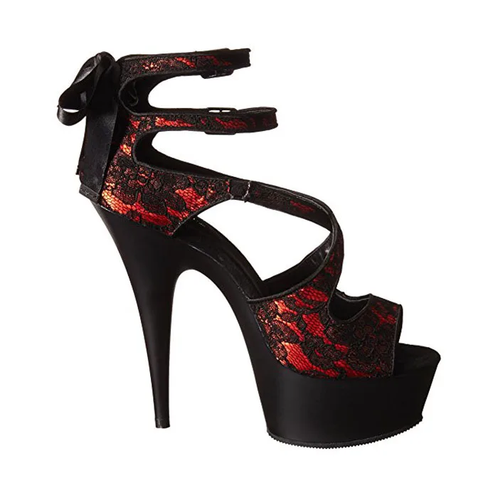 Red Lace stiletto heels 15 cm pole dance high heels platform elegant leaky toe striptease shoes model Catwalk Fashion large sand