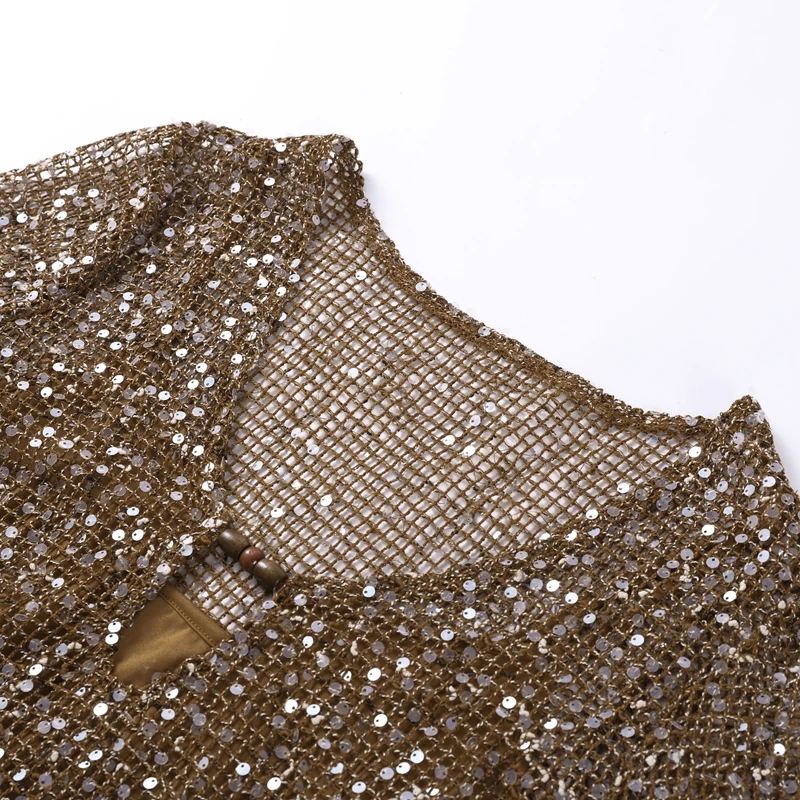 Model Number: Deep V-Neck Sequin Knitted Dress Woman