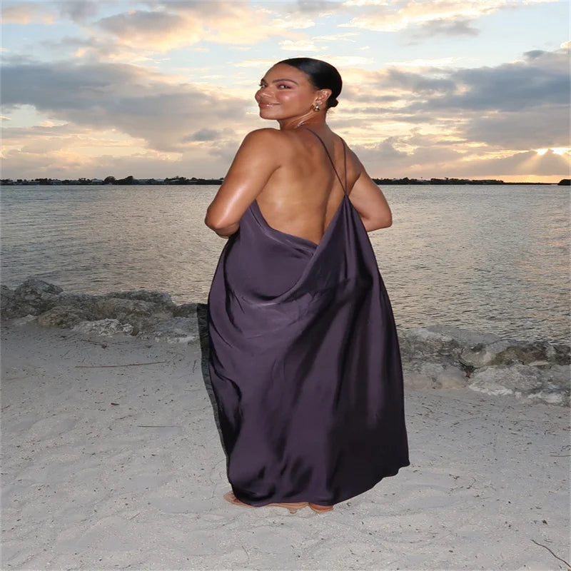 Sexy Halter Women's Dressess Elegant Lace Up Backless Sleeveless Oversize Dress Female Summer New Lady Party Robes