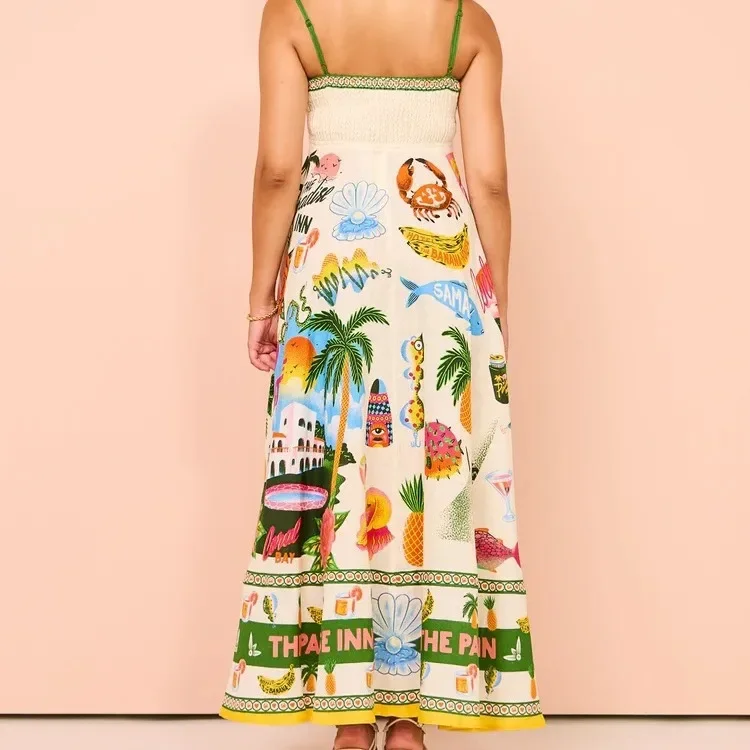 Sexy Off-Shoulder Graffiti Cotton Linen Print Maxi Dress Women's New Hot Sale Of The Season Sleeveless Loose Fit Gown for Women