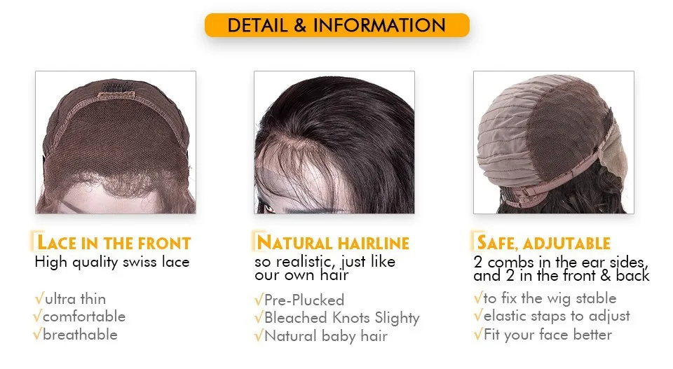 100% Human Hair Long Straight Lace Front Wig Details: